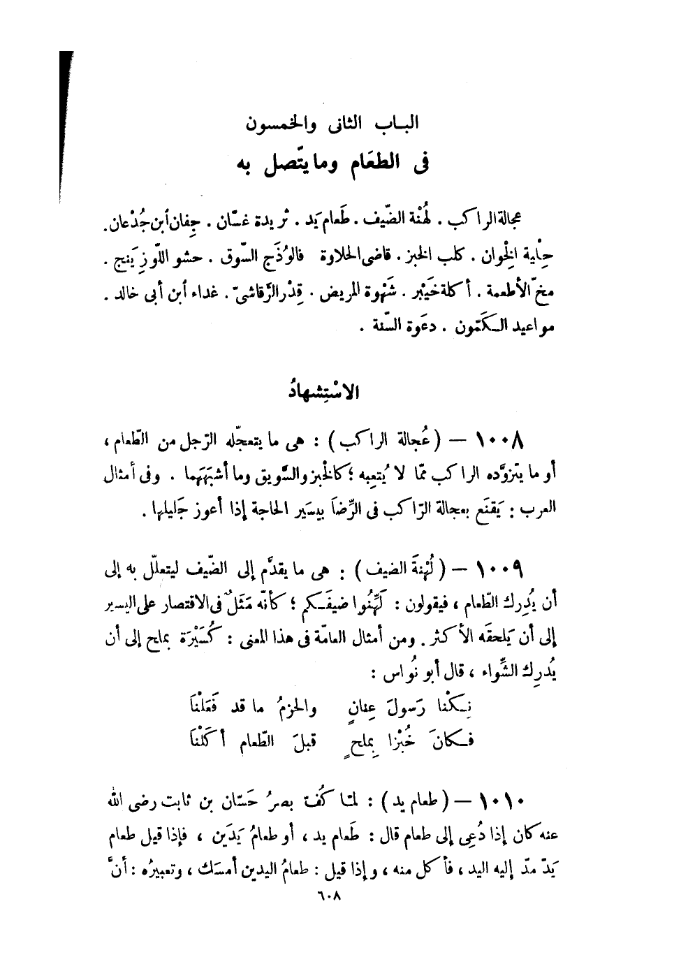 الْبَاب الثانى وَالْخَمْسُونَ فى الطَّعَام وَمَا يتَّصل بِهِ