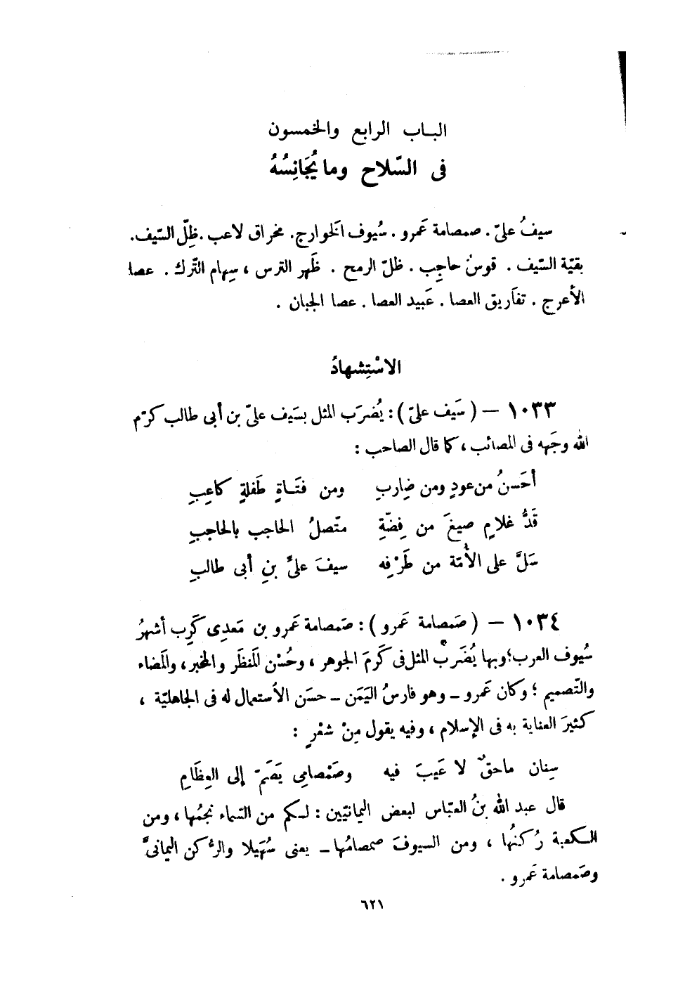 الْبَاب الرَّابِع وَالْخَمْسُونَ فى السِّلَاح وَمَا يجانسه