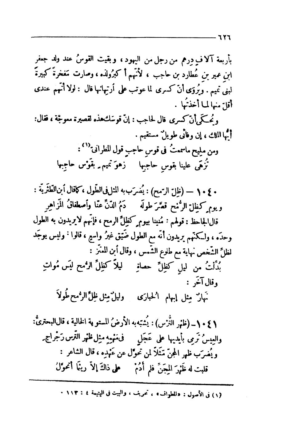 1040 - (ظلّ الرمْح) يضْرب بِهِ الْمثل فى الطول كَمَا قَالَ ابْن الطثرية
