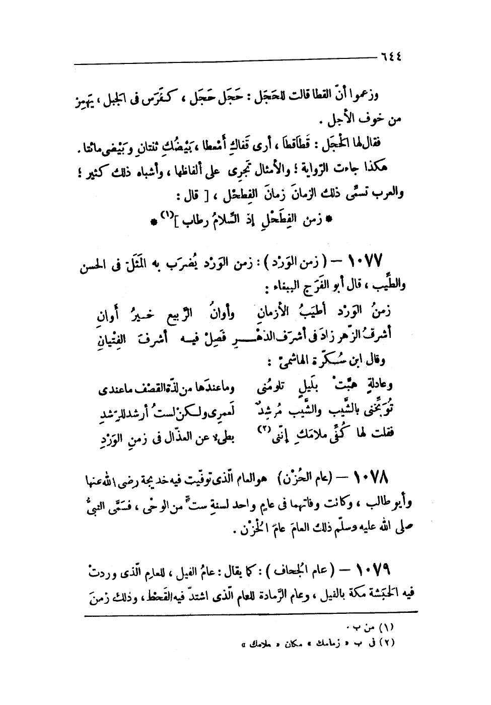 1077 - (زمن الْورْد) زمن الْورْد يضْرب بِهِ الْمثل فى الْحسن وَالطّيب قَالَ أَبُو الْفرج الببغاء