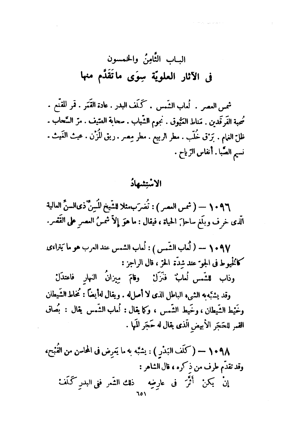 الْبَاب الثَّامِن وَالْخَمْسُونَ فى الْآثَار العلوية سوى مَا تقدم مِنْهَا