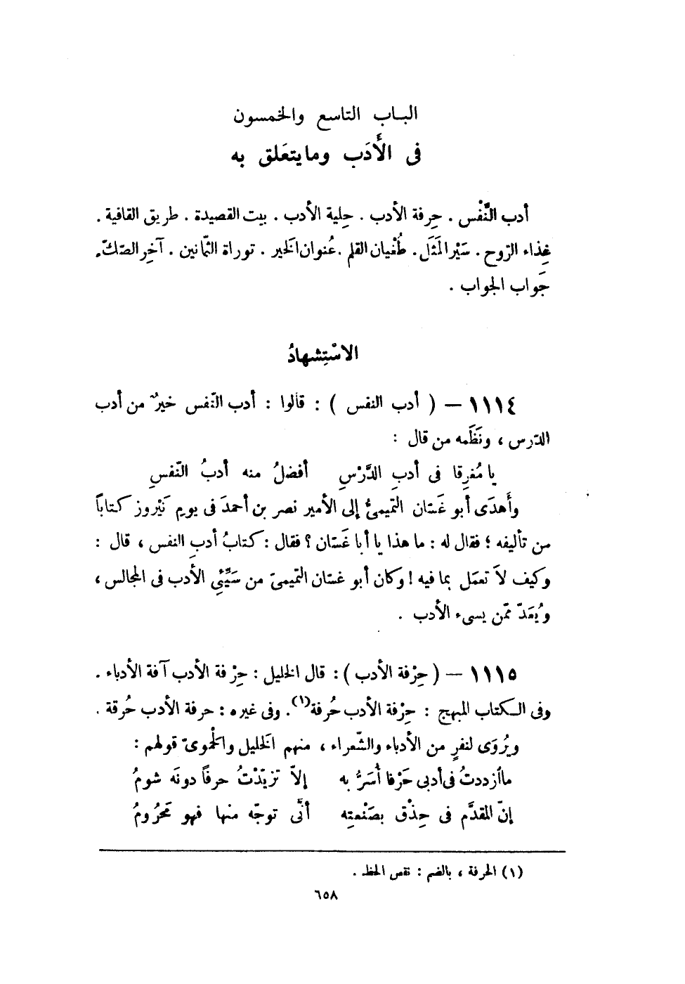 الْبَاب التَّاسِع وَالْخَمْسُونَ فى الْأَدَب وَمَا يتَعَلَّق بِهِ