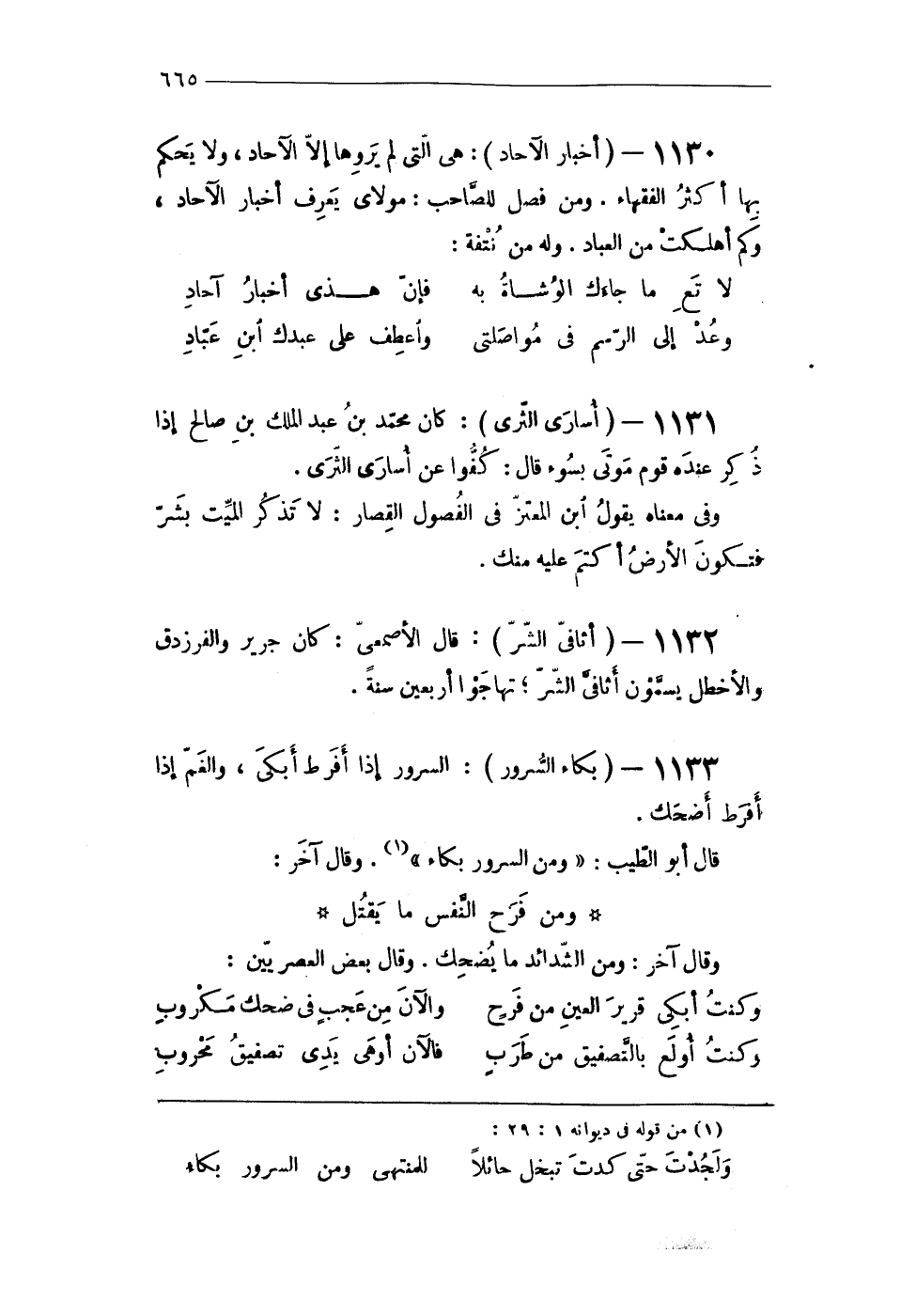 1133 - (بكاء السرُور) السرُور إِذا أفرط أبكى وَالْغَم إِذا أفرط أضْحك