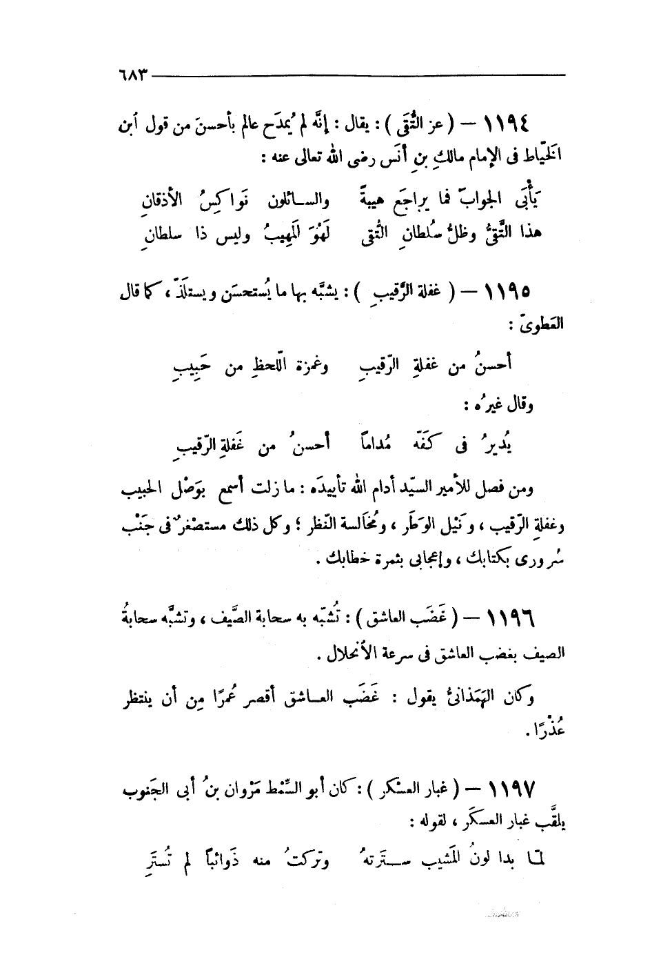 1195 - (غَفلَة الرَّقِيب) يشبه بهَا مَا يستحسن ويستلذ كَمَا قَالَ العطوى