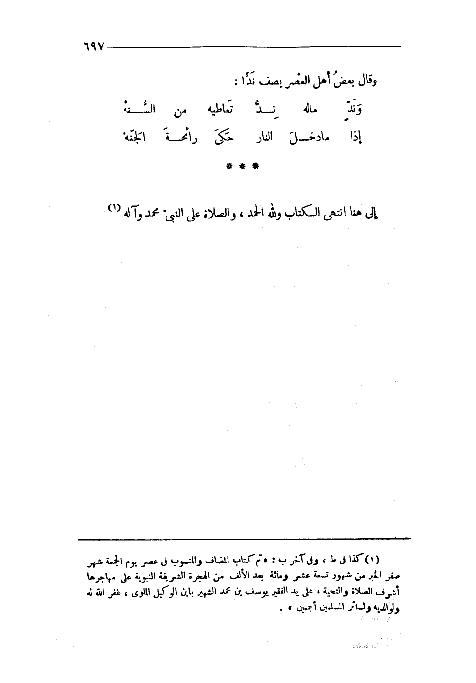 إِلَى هُنَا انْتهى الْكتاب وَللَّه الْحَمد وَالصَّلَاة على النبى مُحَمَّد وَآله