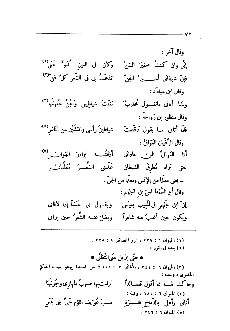 (فَإِن شيطانى أَمِير الْجِنّ ... يذهب بى فى الشّعْر كل فن)