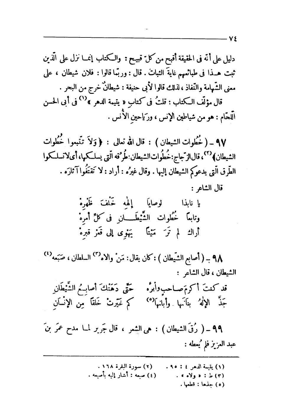 99 - (رقى الشَّيْطَان) هى الشّعْر قَالَ جرير لما مدح عمر بن عبد الْعَزِيز فَلم يُعْطه