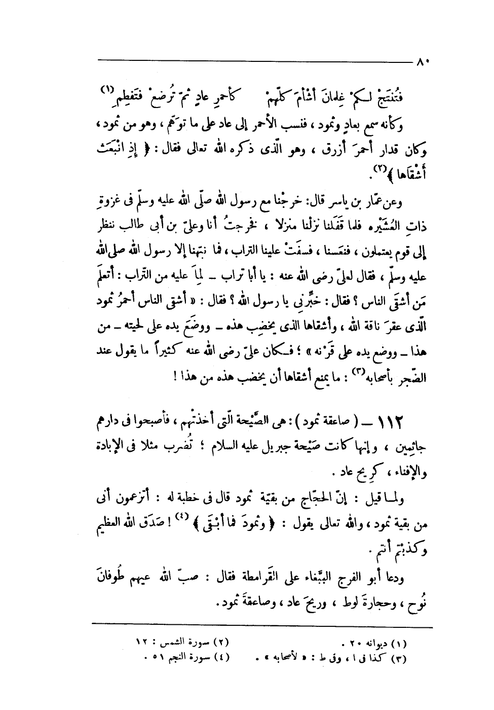 وَلما قيل إِن الْحجَّاج من بَقِيَّة ثَمُود قَالَ فى خطْبَة لَهُ أتزعمون أَنى من بَقِيَّة ثَمُود وَالله تَعَالَى يَقُول {وَثَمُود فَمَا أبقى} صدق الله الْعَظِيم وكذبتم أَنْتُم