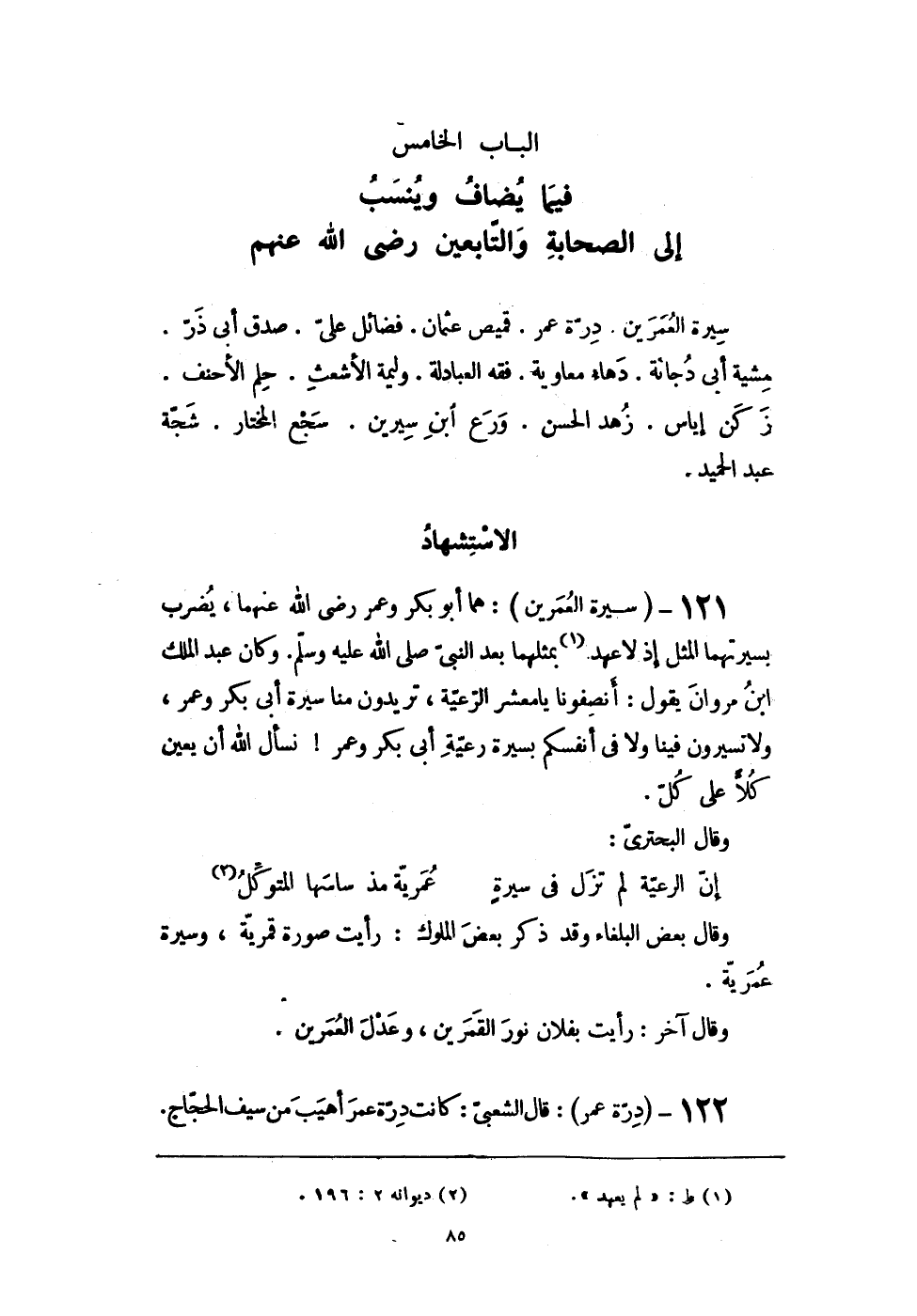 12 - (سيرة العمرين) هما أَبُو بكر وَعمر رضى الله عَنْهُمَا يضْرب بسيرتهما الْمثل إِذْ لاعهد بمثلهما بعد النَّبِي صلى الله عَلَيْهِ وَسلم وَكَانَ عبد الْملك ابْن مَرْوَان يَقُول أنصفونا يَا معشر الرّعية تُرِيدُونَ منا سيرة أَبى بكر وَعمر وَلَا تسيرون فِينَا وَلَا فى أَنفسكُم بسيرة رعية أَبى بكر وَعمر نسْأَل الله أَن يعين كلا على كل