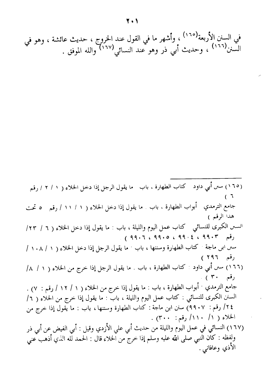 فِي السُّنَنِ الْأَرْبَعَةِ، وَأَشْهَرُ مَا فِي الْقَوْلِ عِنْدَ الْخُرُوجِ، حَدِيثُ عَائِشَةَ، وَهُوَ فِي السُّنَنِ، وَحَدِيثُ أَبِي ذَرٍّ وَهُوَ عِنْدَ النَّسَائِيّ وَاَللَّهُ الْمُوَفِّقُ.