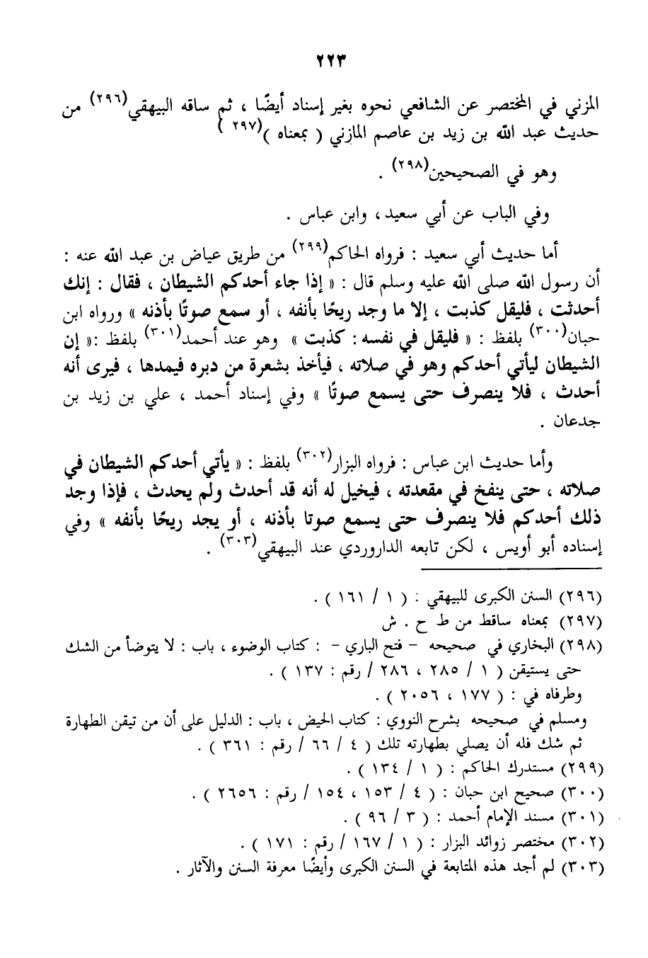 الْمُزَنِيّ فِي الْمُخْتَصَرِ عَنْ الشَّافِعِيِّ نَحْوَهُ بِغَيْرِ إسْنَادٍ أَيْضًا، ثُمَّ سَاقَهُ الْبَيْهَقِيّ مِنْ حَدِيثِ عَبْدِ اللَّهِ بْنِ زَيْدِ بْنِ عَاصِمٍ الْمَازِنِيِّ (بِمَعْنَاهُ) وَهُوَ فِي الصَّحِيحَيْنِ.