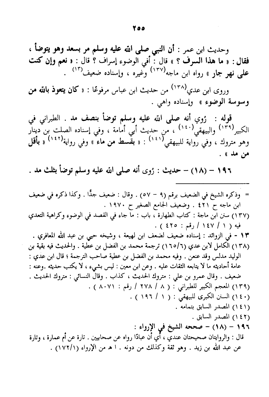 196 - (18) - حَدِيثُ: رَوَى «أَنَّهُ - صَلَّى اللَّهُ عَلَيْهِ وَسَلَّمَ - تَوَضَّأَ بِثُلُثِ مُدٍّ» .