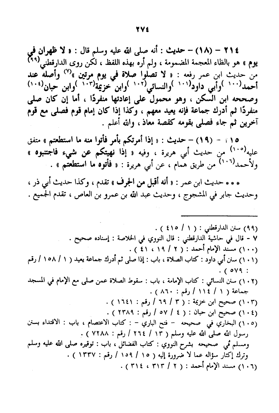 215 - (19) - حَدِيثُ: «إذَا أَمَرْتُكُمْ بِأَمْرٍ فَأْتُوا مِنْهُ مَا اسْتَطَعْتُمْ» مُتَّفَقٌ عَلَيْهِ مِنْ حَدِيثِ أَبِي هُرَيْرَةَ، وَفِيهِ «إذَا نَهَيْتُكُمْ عَنْ شَيْءٍ فَاجْتَنِبُوهُ» وَلِأَحْمَدَ مِنْ طَرِيقِ هَمَّامٍ، عَنْ أَبِي هُرَيْرَةَ: «فَأْتُوهُ مَا اسْتَطَعْتُمْ» .
