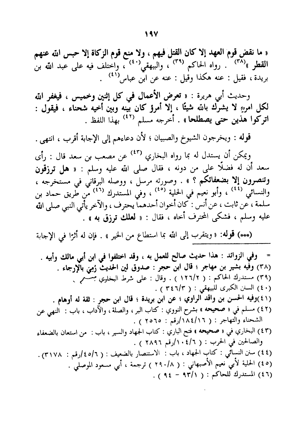 وَيُمْكِنُ أَنْ يُسْتَدَلَّ لَهُ بِمَا رَوَاهُ الْبُخَارِيُّ عَنْ مُصْعَبِ بْنِ سَعْدٍ قَالَ: رَأَى سَعْدٌ أَنَّ لَهُ فَضْلًا عَلَى مَنْ دُونَهُ، فَقَالَ - صَلَّى اللَّهُ عَلَيْهِ وَسَلَّمَ -: «هَلْ تُرْزَقُونَ وَتُنْصَرُونَ إلَّا بِضُعَفَائِكُمْ؟» . وَصُورَتُهُ مُرْسَلٌ، وَوَصَلَهُ الْبَرْقَانِيُّ فِي مُسْتَخْرَجِهِ، وَالنَّسَائِيُّ، وَأَبُو نُعَيْمٍ فِي الْحِلْيَةِ، وَفِي الْمُسْتَدْرَكِ مِنْ طَرِيقِ حَمَّادِ بْنِ سَلَمَةَ، عَنْ ثَابِتٍ، عَنْ أَنَسٍ: «كَانَ أَخَوَانِ أَحَدُهُمَا يَحْتَرِفُ، وَالْآخَرُ يَأْتِي النَّبِيَّ - صَلَّى اللَّهُ عَلَيْهِ وَسَلَّمَ - فَشَكَا الْمُحْتَرِفُ أَخَاهُ، فَقَالَ: لَعَلَّك تُرْزَقُ بِهِ» .