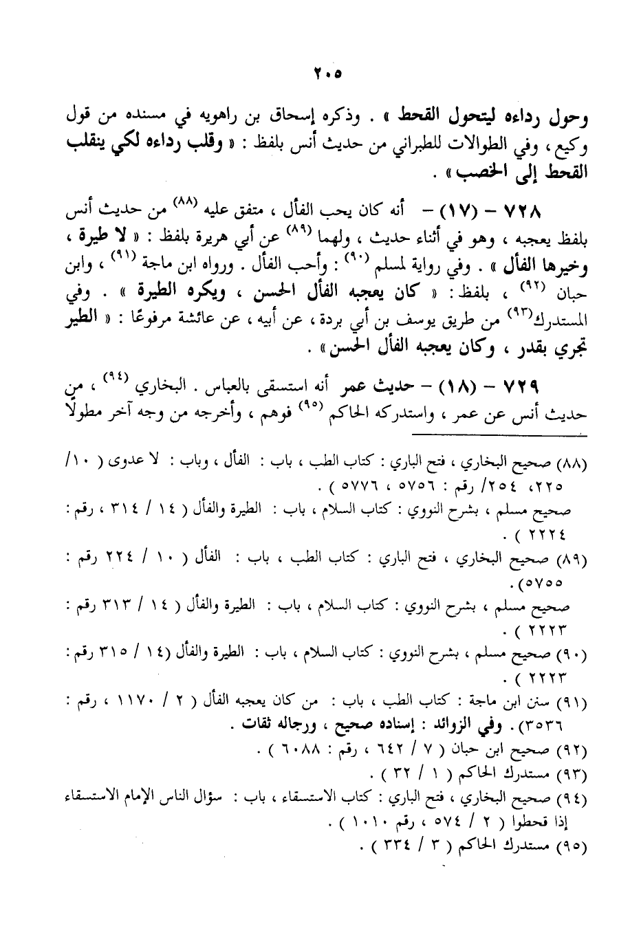 728 - (17) - حَدِيثُ أَنَّهُ كَانَ يُحِبُّ الْفَأْلَ، مُتَّفَقٌ عَلَيْهِ مِنْ حَدِيثِ أَنَسٍ بِلَفْظِ يُعْجِبُهُ، وَهُوَ فِي أَثْنَاءِ حَدِيثٍ، وَلَهُمَا عَنْ أَبِي هُرَيْرَةَ بِلَفْظِ: «لَا طِيَرَةَ، وَخَيْرُهَا الْفَأْلُ» . وَفِي رِوَايَةٍ لِمُسْلِمٍ: وَأُحِبُّ الْفَأْلَ.