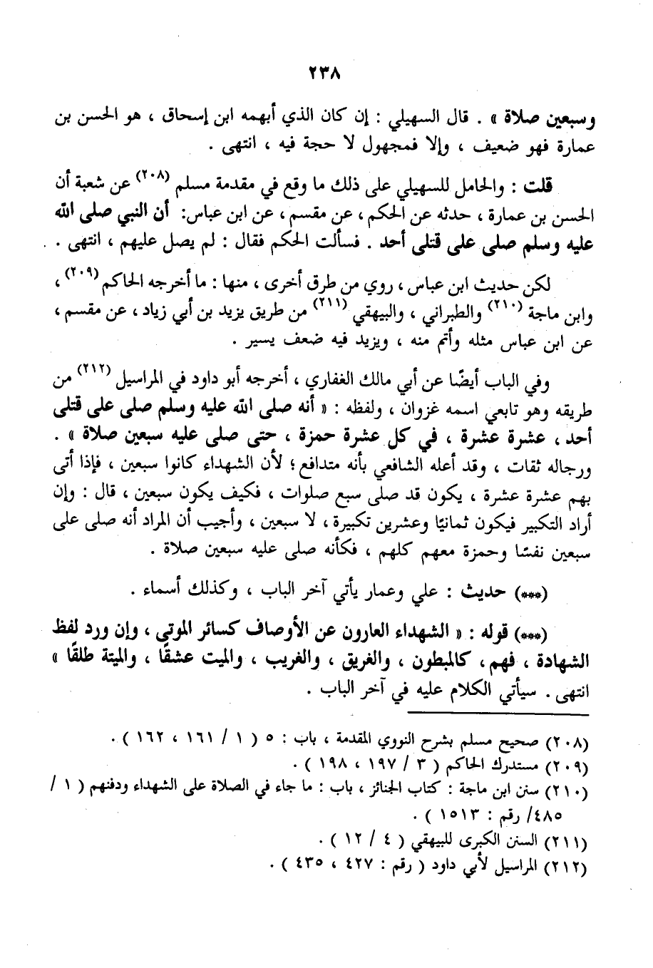قُلْت: وَالْحَامِلُ لِلسُّهَيْلِيِّ عَلَى ذَلِكَ مَا وَقَعَ فِي مُقَدِّمَةِ مُسْلِمٍ عَنْ شُعْبَةَ أَنَّ. الْحَسَنَ بْنَ عُمَارَةَ، حَدَّثَهُ عَنْ الْحَكَمِ، عَنْ مِقْسَمٍ، عَنْ ابْنِ عَبَّاسٍ: «أَنَّ النَّبِيَّ - صَلَّى اللَّهُ عَلَيْهِ وَسَلَّمَ - صَلَّى عَلَى قَتْلَى أُحُدٍ» . فَسَأَلْتُ الْحَكَمَ فَقَالَ: لَمْ يُصَلِّ عَلَيْهِمْ، انْتَهَى. لَكِنَّ حَدِيثَ ابْنِ عَبَّاسٍ، رُوِيَ مِنْ طُرُقٍ أُخْرَى، مِنْهَا: مَا أَخْرَجَهُ الْحَاكِمُ، وَابْنُ مَاجَهْ وَالطَّبَرَانِيُّ، وَالْبَيْهَقِيُّ مِنْ طَرِيقِ يَزِيدَ بْنِ أَبِي زِيَادٍ، عَنْ مِقْسَمٍ، عَنْ ابْنِ عَبَّاسٍ مِثْلُهُ وَأَتَمُّ مِنْهُ، وَيَزِيدُ فِيهِ ضَعْفٌ يَسِيرٌ.