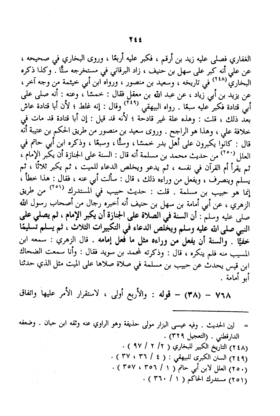 768 - (38) - قَوْلُهُ: وَالْأَرْبَعُ أَوْلَى، لِاسْتِقْرَارِ الْأَمْرِ عَلَيْهَا وَاتِّفَاقِ