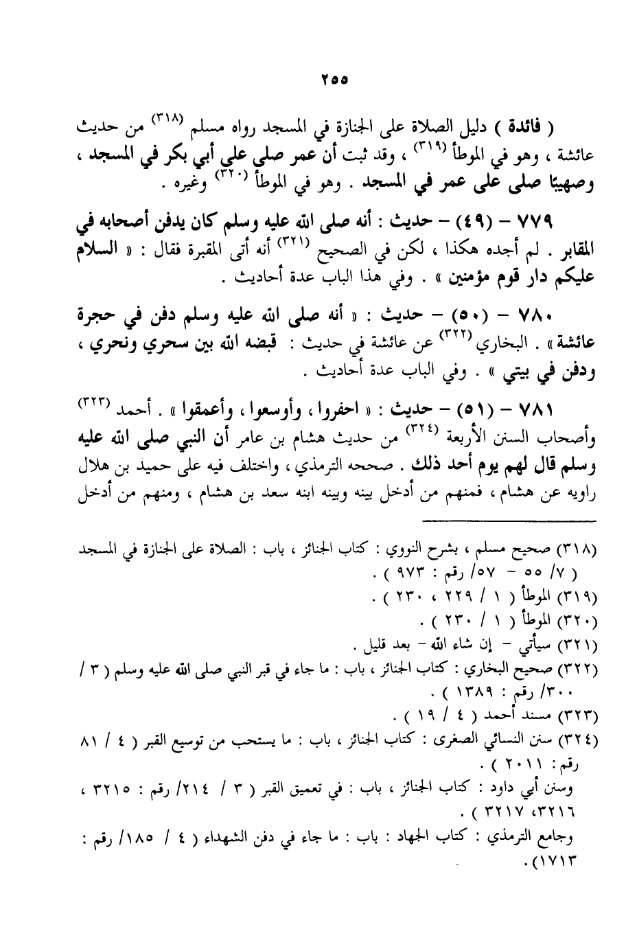 779 - (49) - حَدِيثُ: «أَنَّهُ - صَلَّى اللَّهُ عَلَيْهِ وَسَلَّمَ - كَانَ يَدْفِنَ أَصْحَابَهُ فِي الْمَقَابِرِ» . لَمْ أَجِدْهُ هَكَذَا، لَكِنْ فِي الصَّحِيحِ «أَنَّهُ أَتَى الْمَقْبَرَةَ فَقَالَ: السَّلَامُ عَلَيْكُمْ دَارَ قَوْمٍ مُؤْمِنِينَ» وَفِي هَذَا الْبَابِ عِدَّةُ أَحَادِيثَ