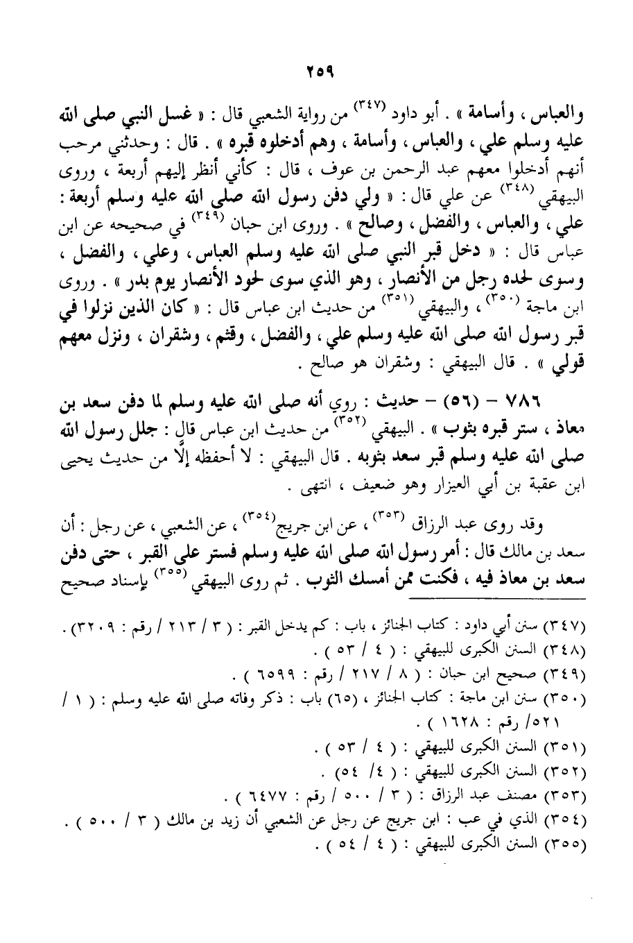 وَالْعَبَّاسُ، وَأُسَامَةُ» . أَبُو دَاوُد مِنْ رِوَايَةِ الشَّعْبِيِّ قَالَ: «غَسَّلَ النَّبِيَّ - صَلَّى اللَّهُ عَلَيْهِ وَسَلَّمَ - عَلِيٌّ، وَالْعَبَّاسُ، وَأُسَامَةُ، وَهُمْ أَدْخَلُوهُ قَبْرَهُ» . قَالَ: وَحَدَّثَنِي مَرْحَبٌ أَنَّهُمْ أَدْخَلُوا مَعَهُمْ عَبْدَ الرَّحْمَنِ بْنَ عَوْفٍ، قَالَ: كَأَنِّي أَنْظُرُ إلَيْهِمْ أَرْبَعَةً.