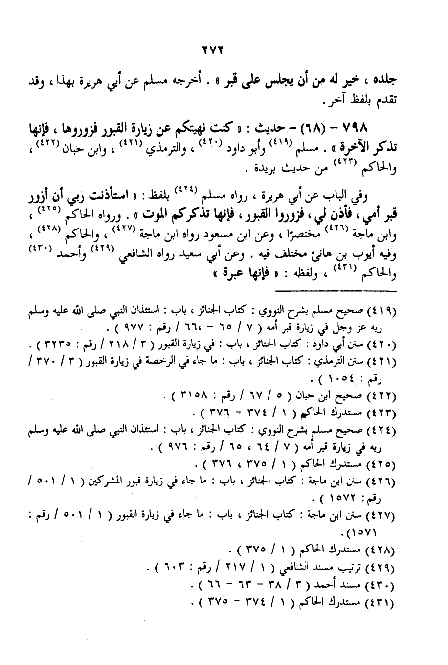 798 - (68) - حَدِيثُ: «كُنْت نَهَيْتُكُمْ عَنْ زِيَارَةِ الْقُبُورِ فَزُورُوهَا، فَإِنَّهَا تُذَكِّرُ الْآخِرَةَ» . مُسْلِمٌ وَأَبُو دَاوُد، وَالتِّرْمِذِيُّ، وَابْنُ حِبَّانَ، وَالْحَاكِمُ مِنْ حَدِيثِ بُرَيْدَةَ.