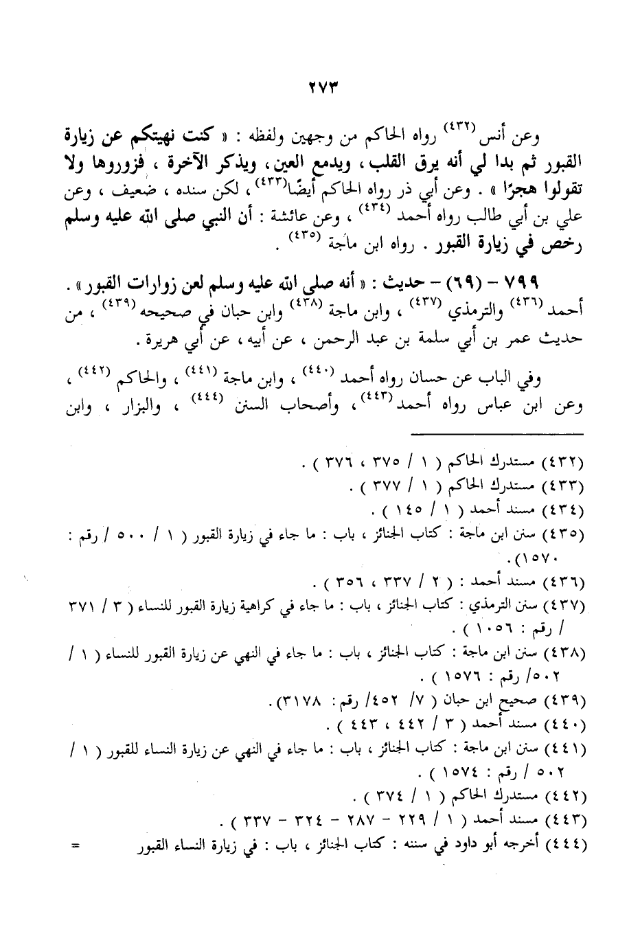799 - (69) - حَدِيثُ: «أَنَّهُ - صَلَّى اللَّهُ عَلَيْهِ وَسَلَّمَ - لَعَنَ زَوَّارَاتِ الْقُبُورِ» . أَحْمَدُ وَالتِّرْمِذِيُّ، وَابْنُ مَاجَهْ وَابْنُ حِبَّانَ فِي صَحِيحِهِ، مِنْ حَدِيثِ عُمَرَ بْنِ أَبِي سَلَمَةَ بْنِ عَبْدِ الرَّحْمَنِ، عَنْ أَبِيهِ، عَنْ أَبِي هُرَيْرَةَ.