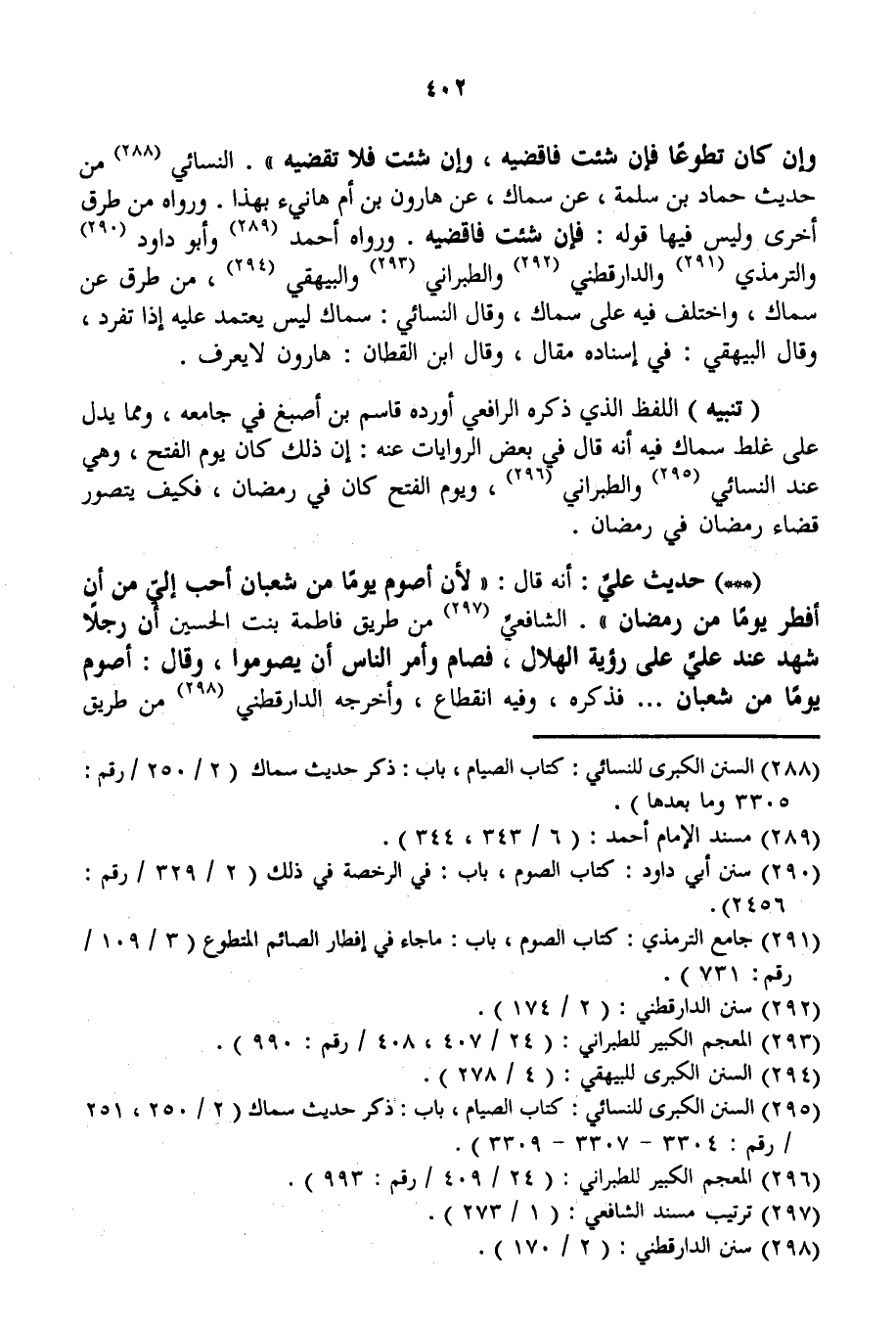 وَإِنْ كَانَ تَطَوُّعًا فَإِنْ شِئْت فَاقْضِيهِ، وَإِنْ شِئْت فَلَا تَقْضِيهِ» . النَّسَائِيُّ مِنْ حَدِيثِ حَمَّادِ بْنِ سَلَمَةَ، عَنْ سِمَاكٍ، عَنْ هَارُونَ ابْنِ أُمِّ هَانِئٍ بِهَذَا. وَرَوَاهُ مِنْ طُرُقٍ أُخْرَى وَلَيْسَ فِيهَا قَوْلُهُ: «فَإِنْ شِئْت فَاقْضِيهِ» . وَرَوَاهُ أَحْمَدُ وَأَبُو دَاوُد وَالتِّرْمِذِيُّ وَالدَّارَقُطْنِيّ وَالطَّبَرَانِيُّ وَالْبَيْهَقِيُّ، مِنْ طُرُقٍ عَنْ سِمَاكٍ، وَاخْتُلِفَ فِيهِ عَلَى سِمَاكٍ، وَقَالَ النَّسَائِيُّ: سِمَاكٌ لَيْسَ يُعْتَمَدُ عَلَيْهِ إذَا تَفَرَّدَ، وَقَالَ الْبَيْهَقِيُّ: فِي إسْنَادِهِ مَقَالٌ، وَقَالَ ابْنُ الْقَطَّانِ: هَارُونُ لَا يُعْرَفُ.