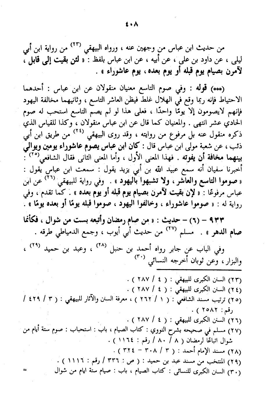 933 - (6) - حَدِيثُ: «مَنْ صَامَ رَمَضَانَ وَأَتْبَعَهُ بِسِتٍّ مِنْ شَوَّالٍ، فَكَأَنَّمَا صَامَ الدَّهْرَ» . مُسْلِمٌ مِنْ حَدِيثِ أَبِي أَيُّوبَ، وَجَمَعَ الدِّمْيَاطِيُّ طُرَقَهُ.