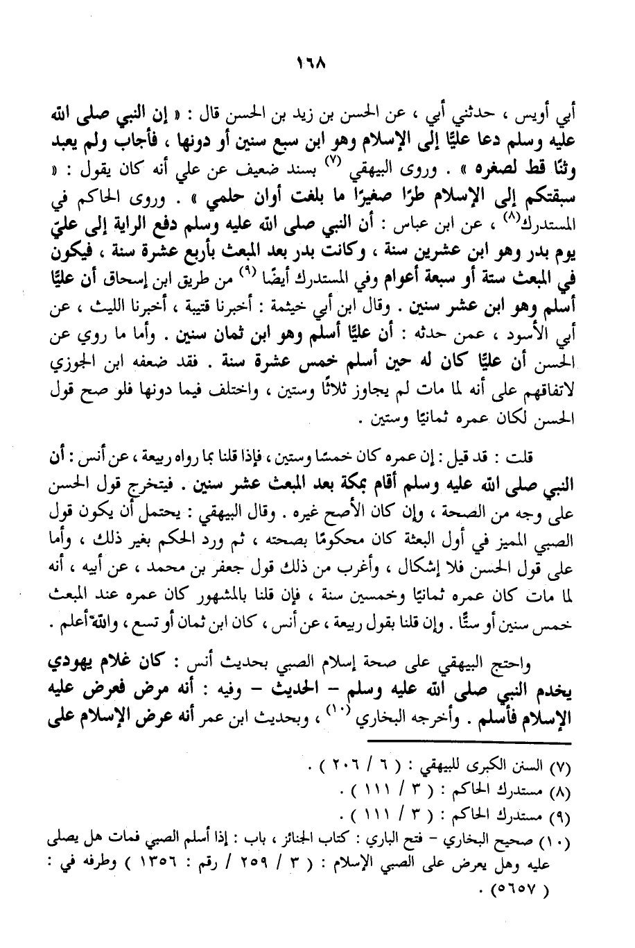 وَاحْتَجَّ الْبَيْهَقِيُّ عَلَى صِحَّةِ إسْلَامِ الصَّبِيِّ بِحَدِيثِ أَنَسٍ: «كَانَ غُلَامٌ يَهُودِيٌّ يَخْدُمُ النَّبِيَّ - صَلَّى اللَّهُ عَلَيْهِ وَسَلَّمَ -» - الْحَدِيثَ - وَفِيهِ: «أَنَّهُ مَرِضَ فَعَرَضَ عَلَيْهِ الْإِسْلَامَ فَأَسْلَمَ» . وَأَخْرَجَهُ الْبُخَارِيُّ، وَبِحَدِيثِ ابْنِ عُمَرَ أَنَّهُ عُرِضَ الْإِسْلَامُ عَلَى