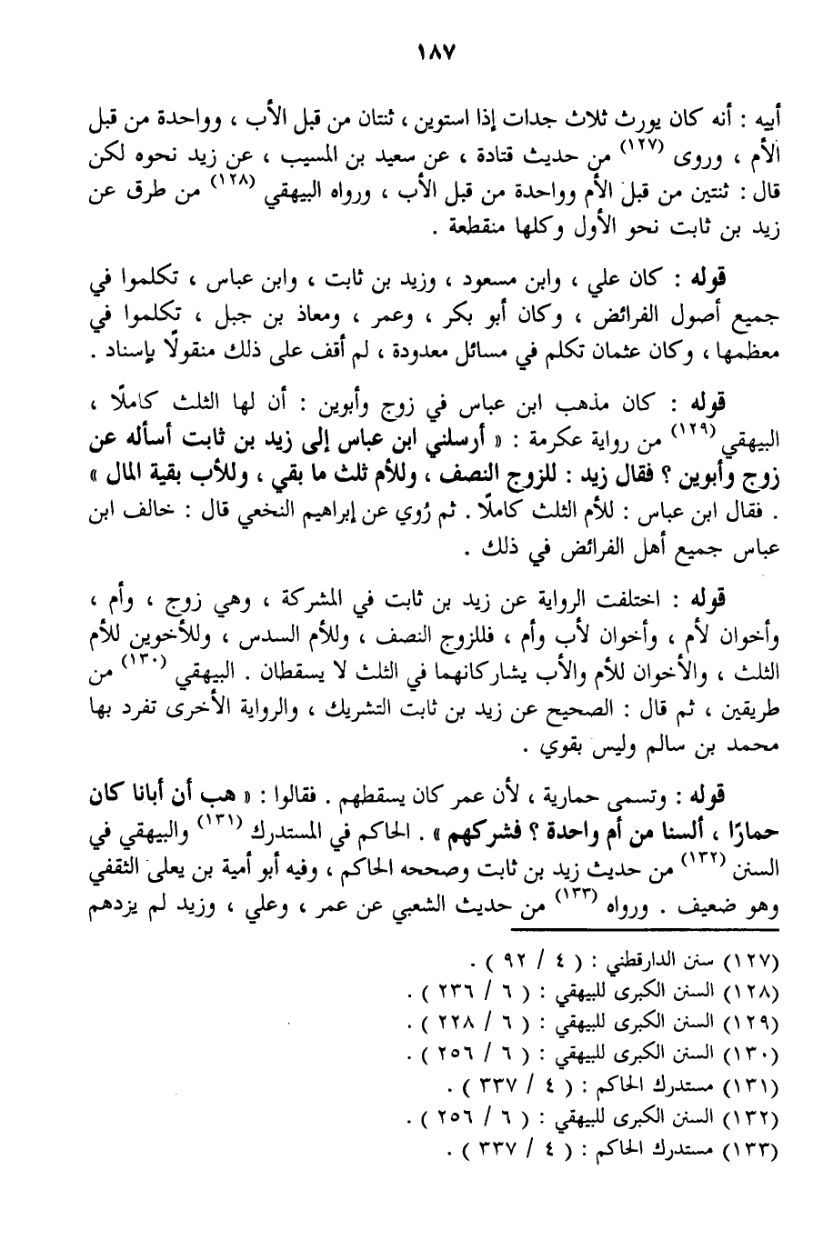 قَوْلُهُ: كَانَ عَلِيٌّ، وَابْنُ مَسْعُودٍ، وَزَيْدُ بْنُ ثَابِتٍ، وَابْنُ عَبَّاسٍ، تَكَلَّمُوا فِي جَمِيعِ أُصُولِ الْفَرَائِضِ، وَكَانَ أَبُو بَكْرٍ، وَعُمَرُ، وَمُعَاذُ بْنُ جَبَلٍ، تَكَلَّمُوا فِي مُعْظَمِهَا، وَكَانَ عُثْمَانُ تَكَلَّمَ فِي مَسَائِلَ مَعْدُودَةٍ، لَمْ أَقِفْ عَلَى ذَلِكَ مَنْقُولًا بِإِسْنَادٍ.