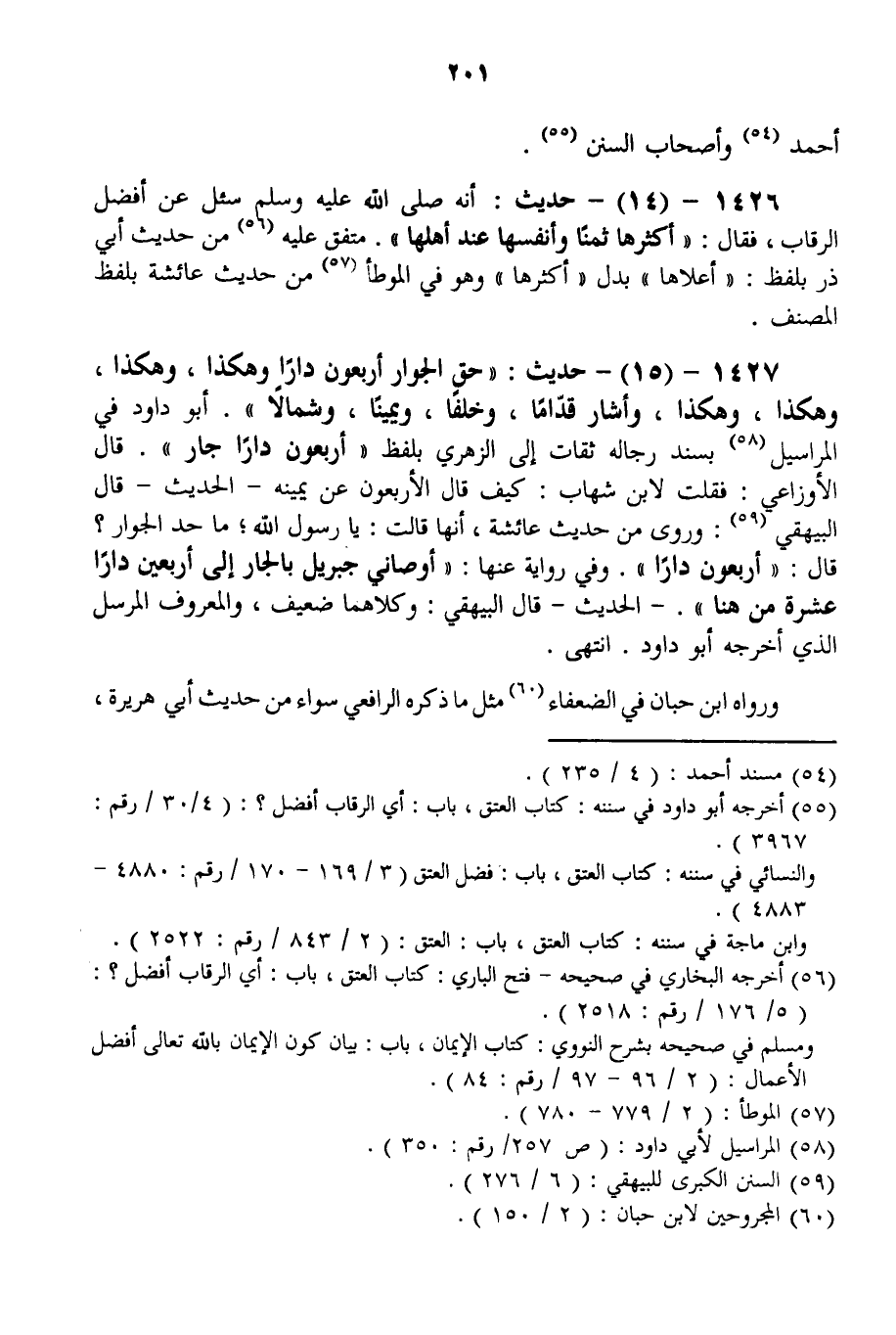 1426 - (14) - حَدِيثُ: «أَنَّهُ - صَلَّى اللَّهُ عَلَيْهِ وَسَلَّمَ - سُئِلَ عَنْ أَفْضَلِ الرِّقَابِ، فَقَالَ: أَكْثَرُهَا ثَمَنًا وَأَنْفَسُهَا عِنْدَ أَهْلِهَا» . مُتَّفَقٌ عَلَيْهِ مِنْ حَدِيثِ أَبِي ذَرٍّ بِلَفْظِ: «أَعْلَاهَا» بَدَلَ «أَكْثَرُهَا» وَهُوَ فِي الْمُوَطَّأِ مِنْ حَدِيثِ عَائِشَةَ بِلَفْظِ الْمُصَنِّفِ.