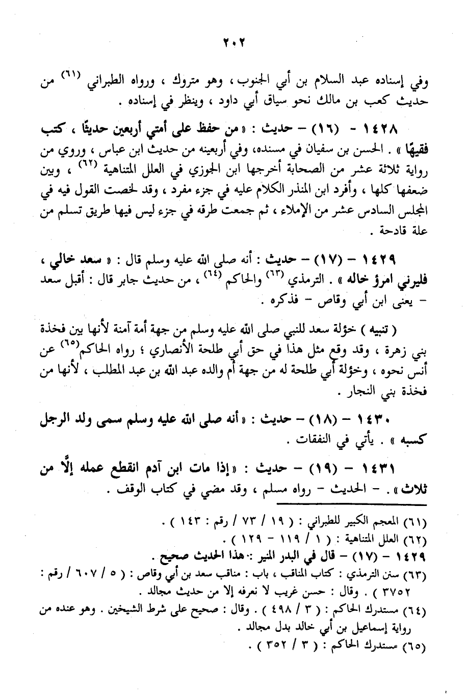 1431 - (19) - حَدِيثُ: «إذَا مَاتَ ابْنُ آدَمَ انْقَطَعَ عَمَلُهُ إلَّا مِنْ ثَلَاثٍ» . - الْحَدِيثُ - رَوَاهُ مُسْلِمٌ، وَقَدْ مَضَى فِي كِتَابِ الْوَقْفِ.