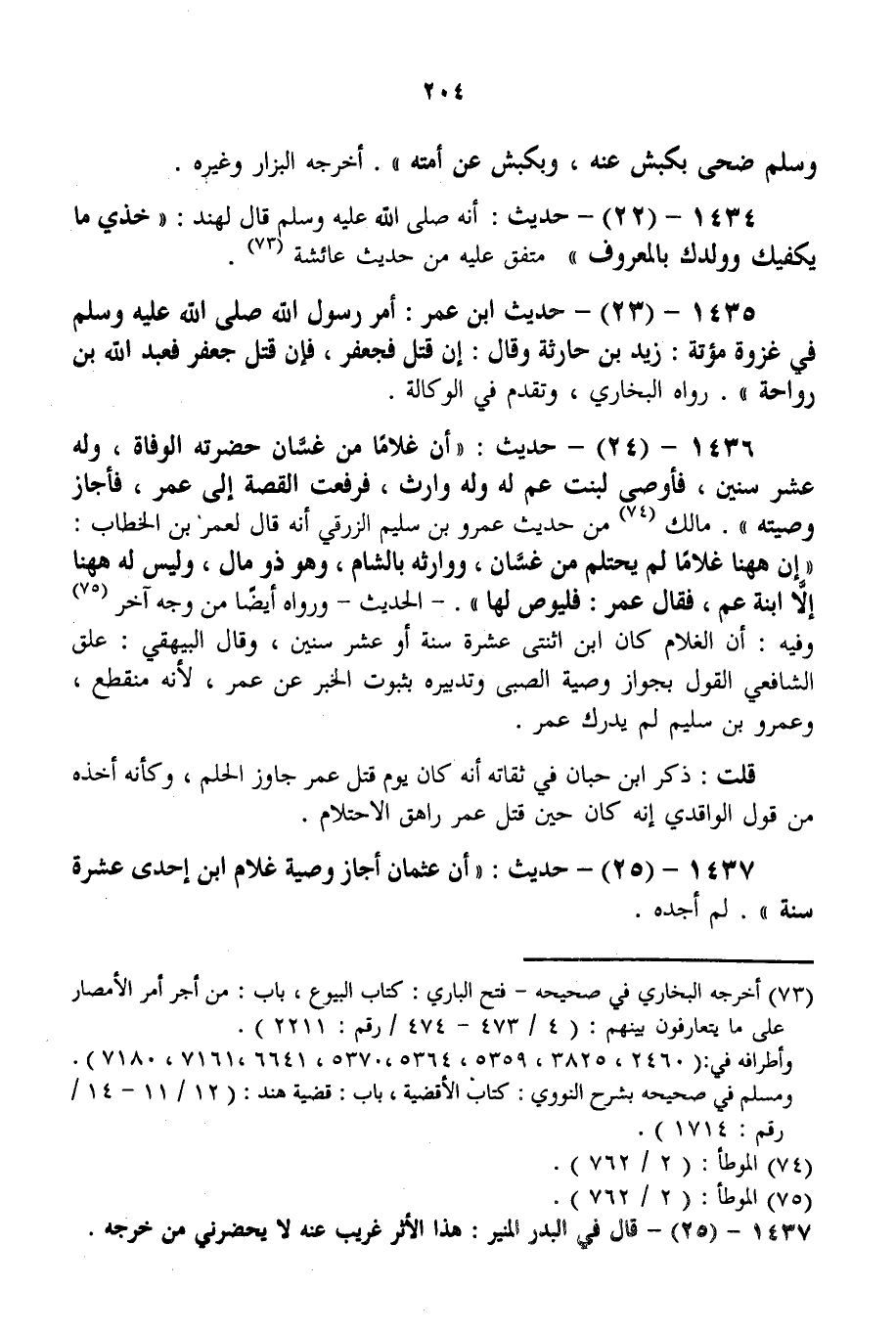 قُلْت: ذَكَرَ ابْنُ حِبَّانَ فِي ثِقَاتِهِ أَنَّهُ كَانَ يَوْمَ قَتْلِ عُمَرَ جَاوَزَ الْحُلُمَ، وَكَأَنَّهُ أَخَذَهُ مِنْ قَوْلِ الْوَاقِدِيِّ إنَّهُ كَانَ حِينَ قُتِلَ عُمَرُ رَاهَقَ الِاحْتِلَامَ. 50 1437 - (25) - حَدِيثُ: " أَنَّ عُثْمَانَ أَجَازَ وَصِيَّةَ غُلَامٍ ابْنِ إحْدَى عَشْرَةَ سَنَةً ". لَمْ أَجِدْهُ.