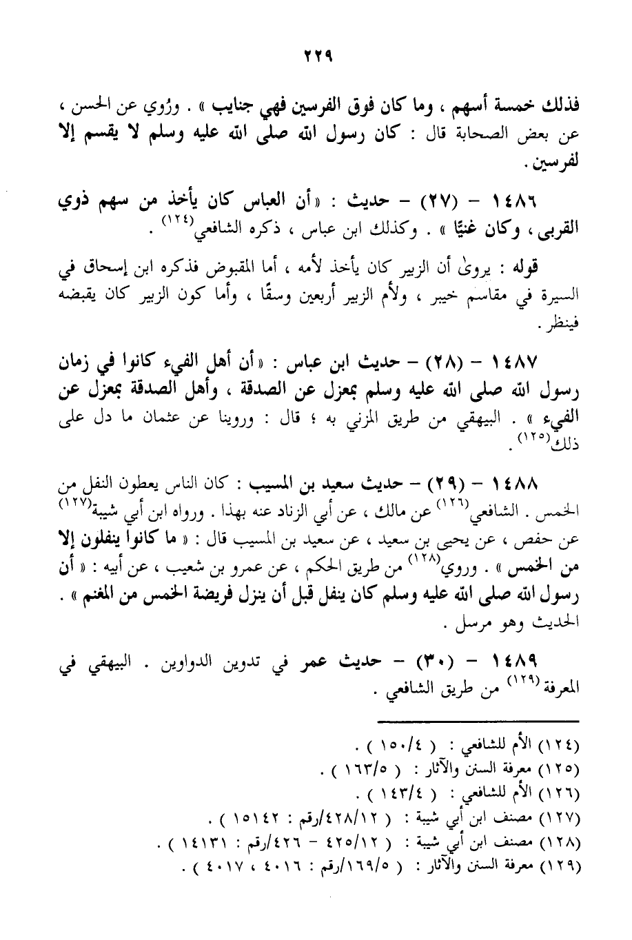 1486 - (27) - حَدِيثُ: " أَنَّ الْعَبَّاسَ كَانَ يَأْخُذُ مِنْ سَهْمِ ذَوِي الْقُرْبَى، وَكَانَ غَنِيًّا ". وَكَذَلِكَ ابْنُ عَبَّاسٍ، ذَكَرَهُ الشَّافِعِيُّ. قَوْلُهُ: يُرْوَى أَنَّ الزُّبَيْرَ كَانَ يَأْخُذُ لِأُمِّهِ، أَمَّا الْمَقْبُوضُ فَذَكَرَهُ ابْنُ إِسْحَاقَ فِي السِّيرَةِ فِي مَقَاسِمِ خَيْبَرَ، وَلِأُمِّ الزُّبَيْرِ أَرْبَعِينَ وَسْقًا، وَأَمَّا كَوْنُ الزُّبَيْرِ كَانَ يَقْبِضُهُ فَيُنْظَرُ.