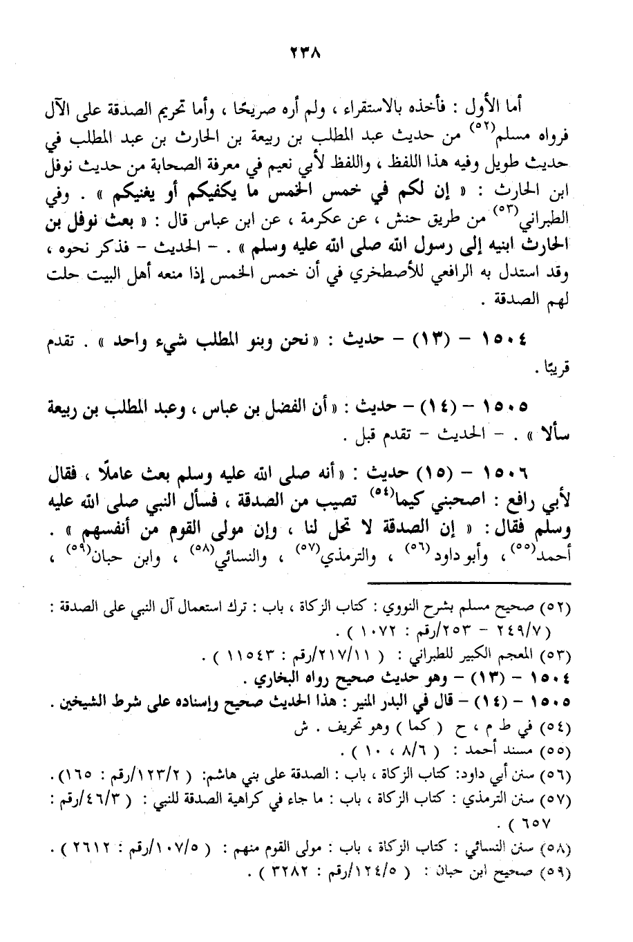 1504 - (13) - حَدِيثُ: «نَحْنُ وَبَنُو الْمُطَّلِبِ شَيْءٌ وَاحِدٌ» . تَقَدَّمَ قَرِيبًا. 50 1505 - (14) - حَدِيثُ: «أَنَّ الْفَضْلَ بْنَ عَبَّاسٍ، وَعَبْدَ الْمُطَّلِبِ بْنَ رَبِيعَةَ سَأَلَا» - الْحَدِيثَ - تَقَدَّمَ قَبْلُ.