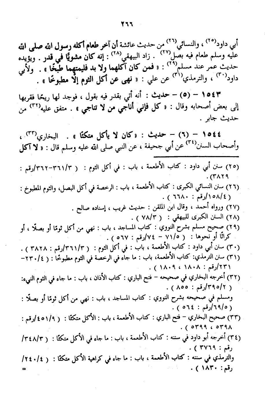 1544 - (6) - حَدِيثٌ: «كَانَ لَا يَأْكُلُ مُتَّكِئًا» . الْبُخَارِيُّ، وَأَصْحَابُ السُّنَنِ عَنْ أَبِي جُحَيْفَةَ، عَنْ النَّبِيِّ - صَلَّى اللَّهُ عَلَيْهِ وَسَلَّمَ - قَالَ: «لَا آكُلُ