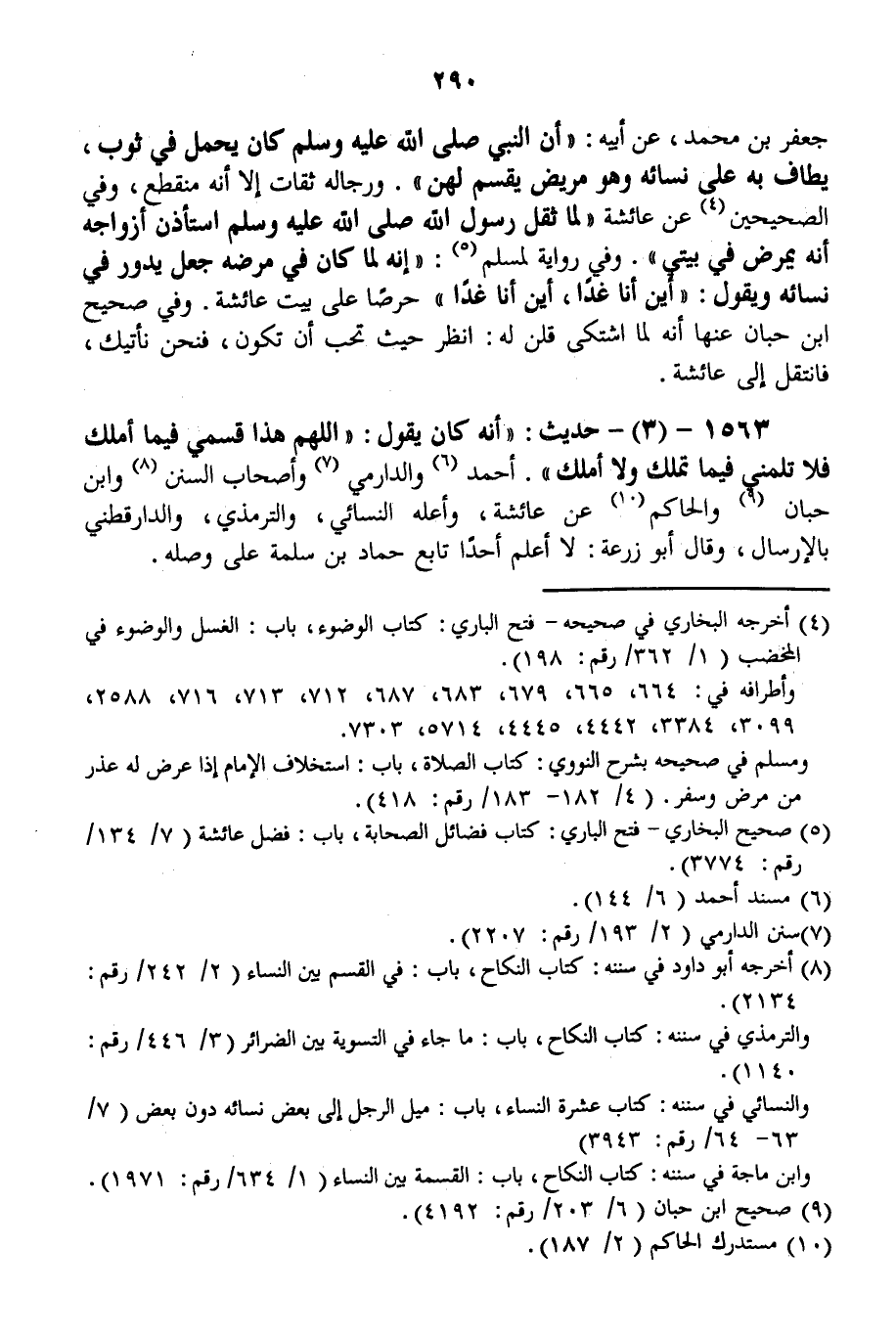 1563 - (3) - حَدِيثٌ: " أَنَّهُ كَانَ يَقُولُ: «اللَّهُمَّ هَذَا قَسْمِي فِيمَا أَمْلِكُ فَلَا تَلُمْنِي فِيمَا تَمْلِكُ وَلَا أَمْلِكُ» . أَحْمَدُ وَالدَّارِمِيُّ وَأَصْحَابُ السُّنَنِ وَابْنُ حِبَّانَ وَالْحَاكِمُ عَنْ عَائِشَةَ، وَأَعَلَّهُ النَّسَائِيُّ، وَالتِّرْمِذِيُّ، وَالدَّارَقُطْنِيّ بِالْإِرْسَالِ، وَقَالَ أَبُو زُرْعَةَ: لَا أَعْلَمُ أَحَدًا تَابَعَ حَمَّادَ بْنَ سَلَمَةَ عَلَى وَصْلِهِ.