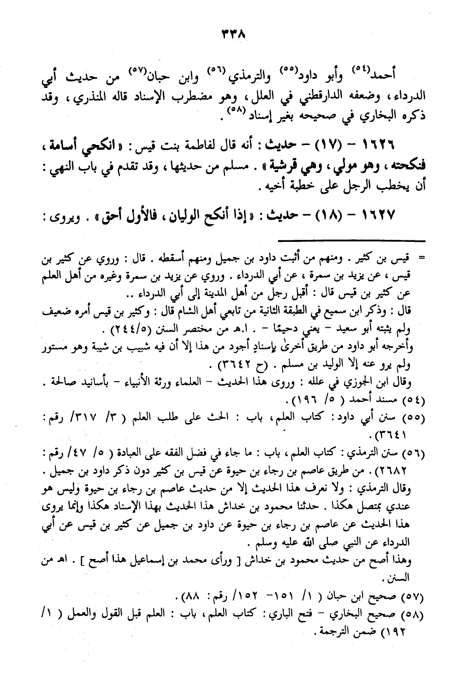 1626 - (17) - حَدِيثٌ: «أَنَّهُ قَالَ لِفَاطِمَةَ بِنْتِ قَيْسٍ: أَنْكِحِي أُسَامَةَ، فَنَكَحَتْهُ، وَهُوَ مَوْلًى، وَهِيَ قُرَشِيَّةٌ» . مُسْلِمٌ مِنْ حَدِيثِهَا، وَقَدْ تَقَدَّمَ فِي بَابِ النَّهْيِ: أَنْ يَخْطُبَ الرَّجُلُ عَلَى خِطْبَةِ أَخِيهِ.