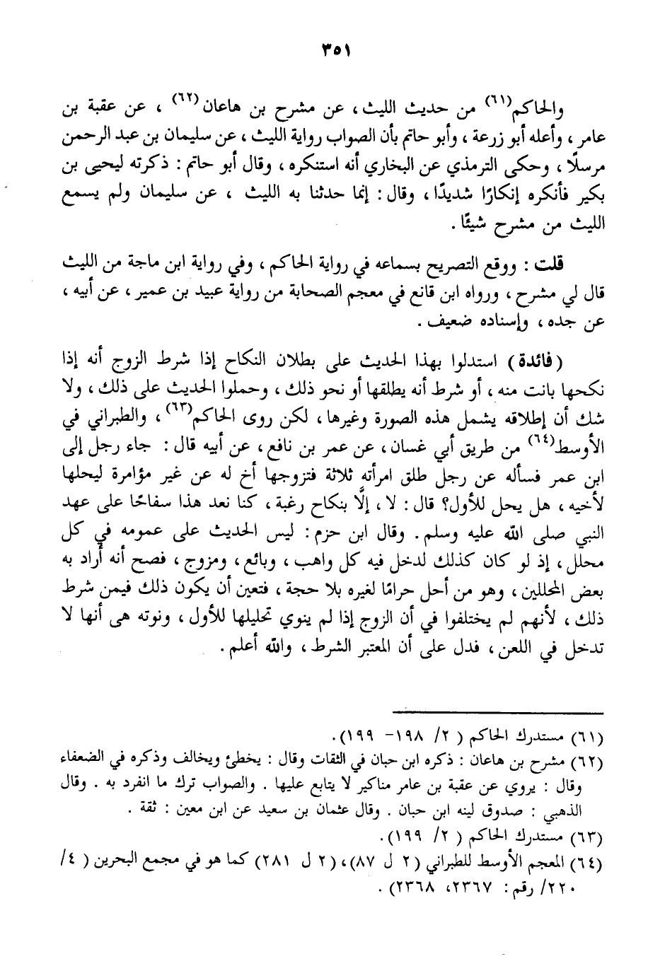 وَالْحَاكِمُ مِنْ حَدِيثِ اللَّيْثِ، عَنْ مِشْرَحِ بْنِ هَاعَانَ، عَنْ عُقْبَةَ بْنِ عَامِرٍ، وَأَعَلَّهُ أَبُو زُرْعَةَ، وَأَبُو حَاتِمٍ بِأَنَّ الصَّوَابَ رِوَايَةُ اللَّيْثِ، عَنْ سُلَيْمَانَ بْنِ عَبْدِ الرَّحْمَنِ مُرْسَلًا، وَحَكَى التِّرْمِذِيُّ عَنْ الْبُخَارِيِّ أَنَّهُ اسْتَنْكَرَهُ.