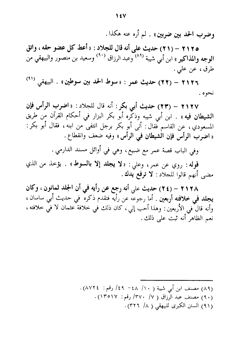 2125 - (21) حَدِيثُ عَلِيٍّ أَنَّهُ قَالَ لِلْجَلَّادِ: " أَعْطِ كُلَّ عُضْوٍ حَقَّهُ، وَاتَّقِ الْوَجْهَ وَالْمَذَاكِيرَ " ابْنُ أَبِي شَيْبَةَ وَعَبْدُ الرَّزَّاقِ وَسَعِيدُ بْنُ مَنْصُورٍ وَالْبَيْهَقِيُّ مِنْ طُرُقٍ، عَنْ عَلِيٍّ.