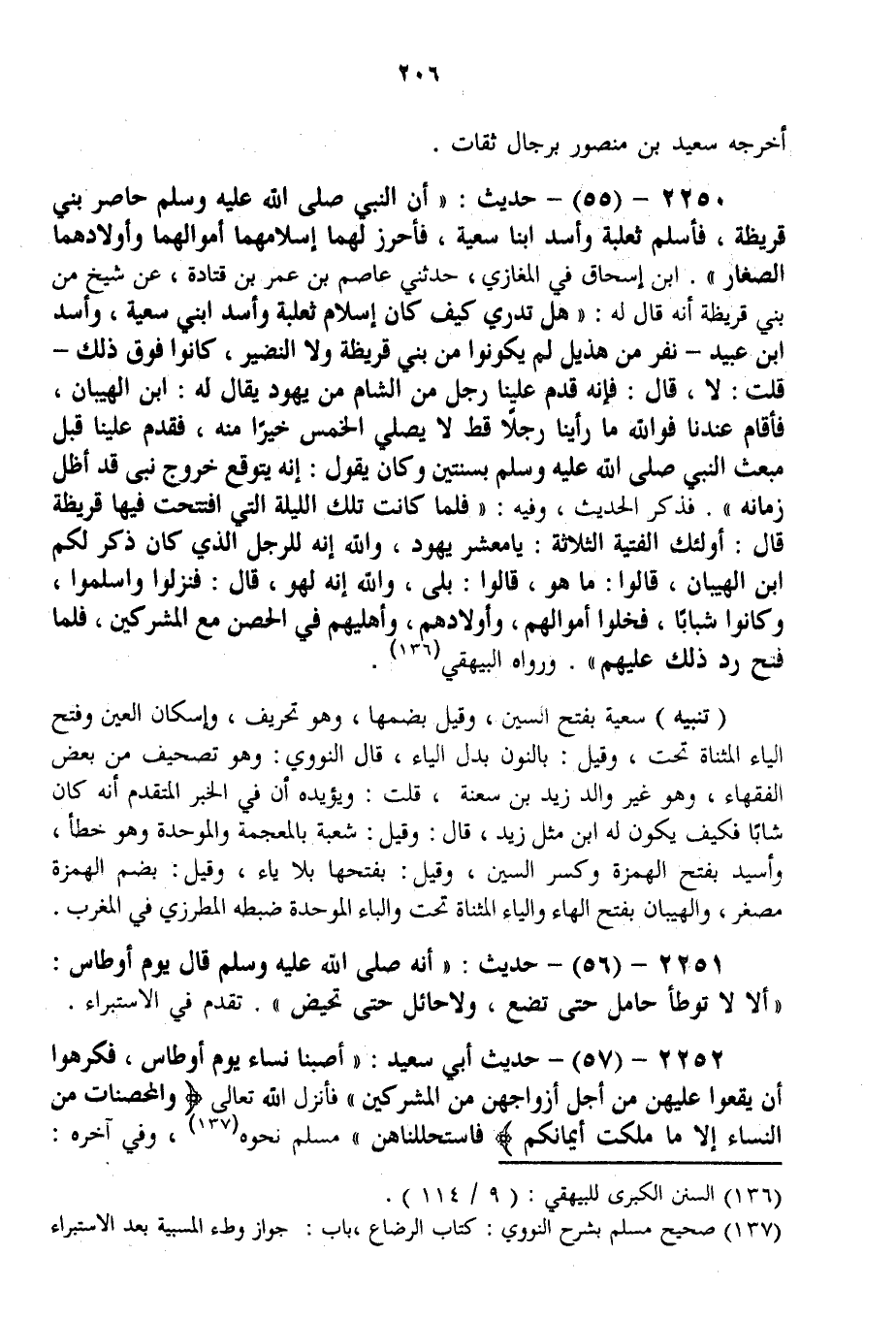 2252 - (57) - حَدِيثُ أَبِي سَعِيدٍ: «أَصَبْنَا نِسَاءَ يَوْمَ أَوْطَاسٍ، فَكَرِهُوا أَنْ يَقَعُوا عَلَيْهِنَّ مِنْ أَجْلِ أَزْوَاجِهِنَّ مِنْ الْمُشْرِكِينَ فَأَنْزَلَ اللَّهُ تَعَالَى {وَالْمُحْصَنَاتُ مِنَ النِّسَاءِ إِلا مَا مَلَكَتْ أَيْمَانُكُمْ} [النساء: 24] فَاسْتَحْلَلْنَاهُنَّ» مُسْلِمٌ نَحْوُهُ، وَفِي آخِرِهِ: