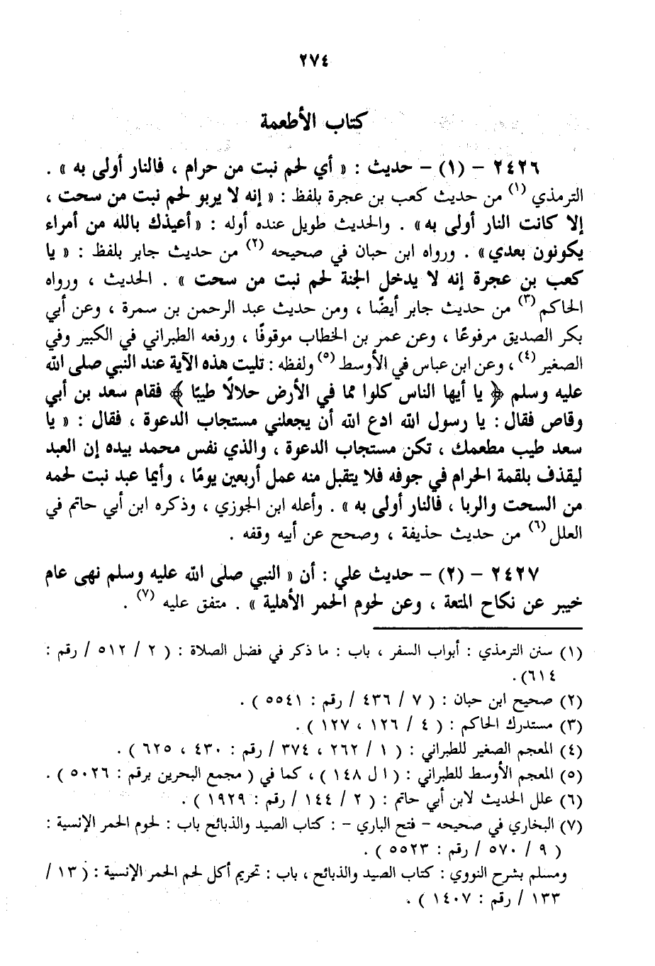 2426 - (1) - حَدِيثُ: «أَيُّ لَحْمٍ نَبَتَ مِنْ حَرَامٍ، فَالنَّارُ أَوْلَى بِهِ» . التِّرْمِذِيُّ مِنْ حَدِيثِ كَعْبِ بْنِ عُجْرَةَ بِلَفْظِ: «إنَّهُ لَا يَرْبُو لَحْمٌ نَبَتَ مِنْ سُحْتٍ، إلَّا كَانَتْ النَّارُ أَوْلَى بِهِ» وَالْحَدِيثُ طَوِيلٌ عِنْدَهُ أَوَّلُهُ: «أُعِيذُك بِاَللَّهِ مِنْ أُمَرَاءَ يَكُونُونَ بَعْدِي» .
