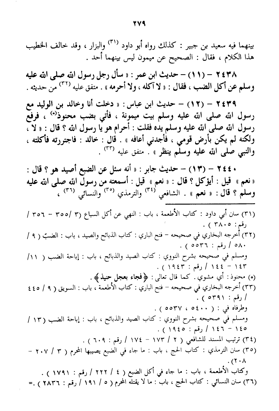 2440 - (13) - حَدِيثُ جَابِرٍ: «أَنَّهُ سُئِلَ عَنْ الضَّبُعِ أَصَيْدٌ هُوَ؟ قَالَ: نَعَمْ قِيلَ: أَيُؤْكَلُ؟ قَالَ: نَعَمْ قِيلَ: أَسَمِعْتَهُ مِنْ رَسُولِ اللَّهِ - صَلَّى اللَّهُ عَلَيْهِ وَسَلَّمَ -؟ قَالَ: نَعَمْ» . الشَّافِعِيُّ وَالتِّرْمِذِيُّ وَالنَّسَائِيُّ،