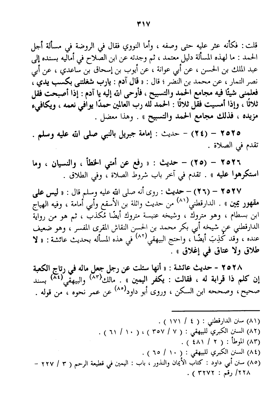 2528 - حَدِيثُ عَائِشَةَ: " أَنَّهَا سُئِلَتْ عَنْ رَجُلٍ جَعَلَ مَالِهِ فِي رِتَاجِ الْكَعْبَةِ إنْ كَلَّمَ ذَا قَرَابَةٍ لَهُ، فَقَالَتْ: يُكَفِّرُ الْيَمِينَ ". مَالِكٌ وَالْبَيْهَقِيُّ بِسَنَدٍ صَحِيحٍ، وَصَحَّحَهُ ابْنُ السَّكَنِ، وَرَوَى أَبُو دَاوُد عَنْ عُمَرَ نَحْوَهُ، مِنْ قَوْلِهِ.