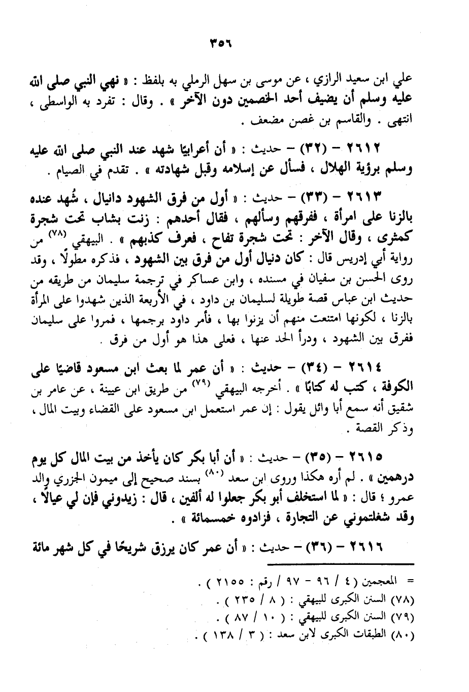 2615 - (35) - حَدِيثُ: " أَنَّ أَبَا بَكْرٍ كَانَ يَأْخُذُ مِنْ بَيْتِ الْمَالِ كُلَّ يَوْمٍ دِرْهَمَيْنِ ". لَمْ أَرَهُ هَكَذَا وَرَوَى ابْنُ سَعْدٍ بِسَنَدٍ صَحِيحٍ إلَى مَيْمُونَ الْجَزَرِيِّ وَالِدِ عَمْرٍو؛ قَالَ: " لَمَّا اُسْتُخْلِفَ أَبُو بَكْرٍ جَعَلُوا لَهُ أَلْفَيْنِ، قَالَ: زِيدُونِي فَإِنَّ لِي عِيَالًا، وَقَدْ شَغَلْتُمُونِي عَنْ التِّجَارَةِ، فَزَادُوهُ خَمْسَمِائَةٍ ".