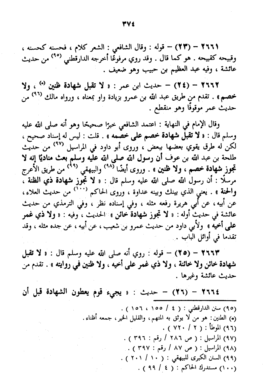 2662 - (24) - حَدِيثُ ابْنِ عُمَرَ: " لَا تُقْبَلُ شَهَادَةُ ظَنِينٍ، وَلَا خَصْمٍ ". تَقَدَّمَ مِنْ طَرِيقِ عَبْدِ اللَّهِ بْنِ عَمْرِو بِزِيَادَةِ وَاوٍ بِمَعْنَاهُ، وَرَوَاهُ مَالِكٌ مِنْ حَدِيثِ عُمَرَ مَوْقُوفًا وَهُوَ مُنْقَطِعٌ.
