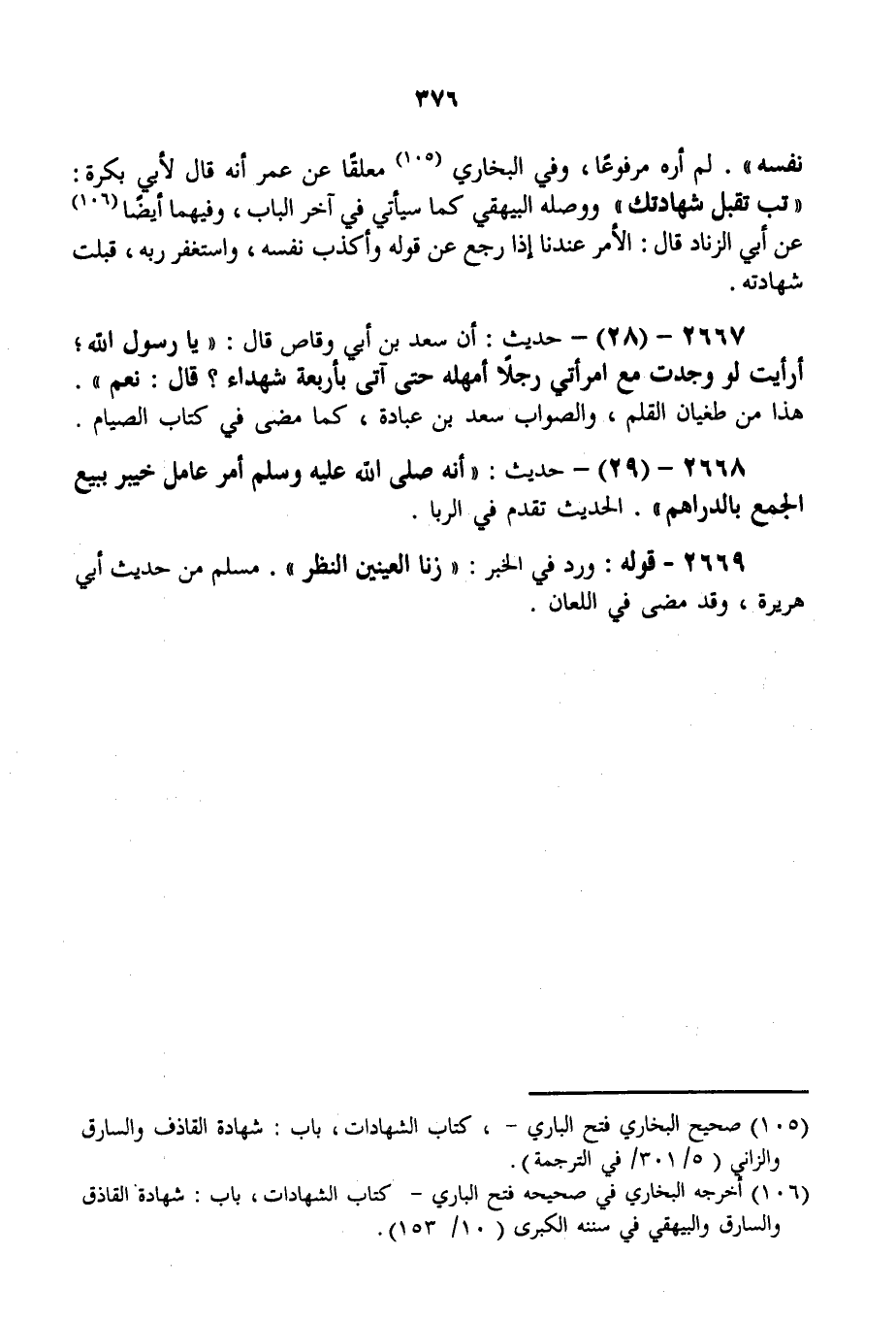 2669 - قَوْلُهُ: وَرَدَ فِي الْخَبَرِ: «زَنَا الْعَيْنَيْنِ النَّظَرُ» مُسْلِمٌ مِنْ حَدِيثِ أَبِي هُرَيْرَةَ وَقَدْ مَضَى فِي اللِّعَانِ.