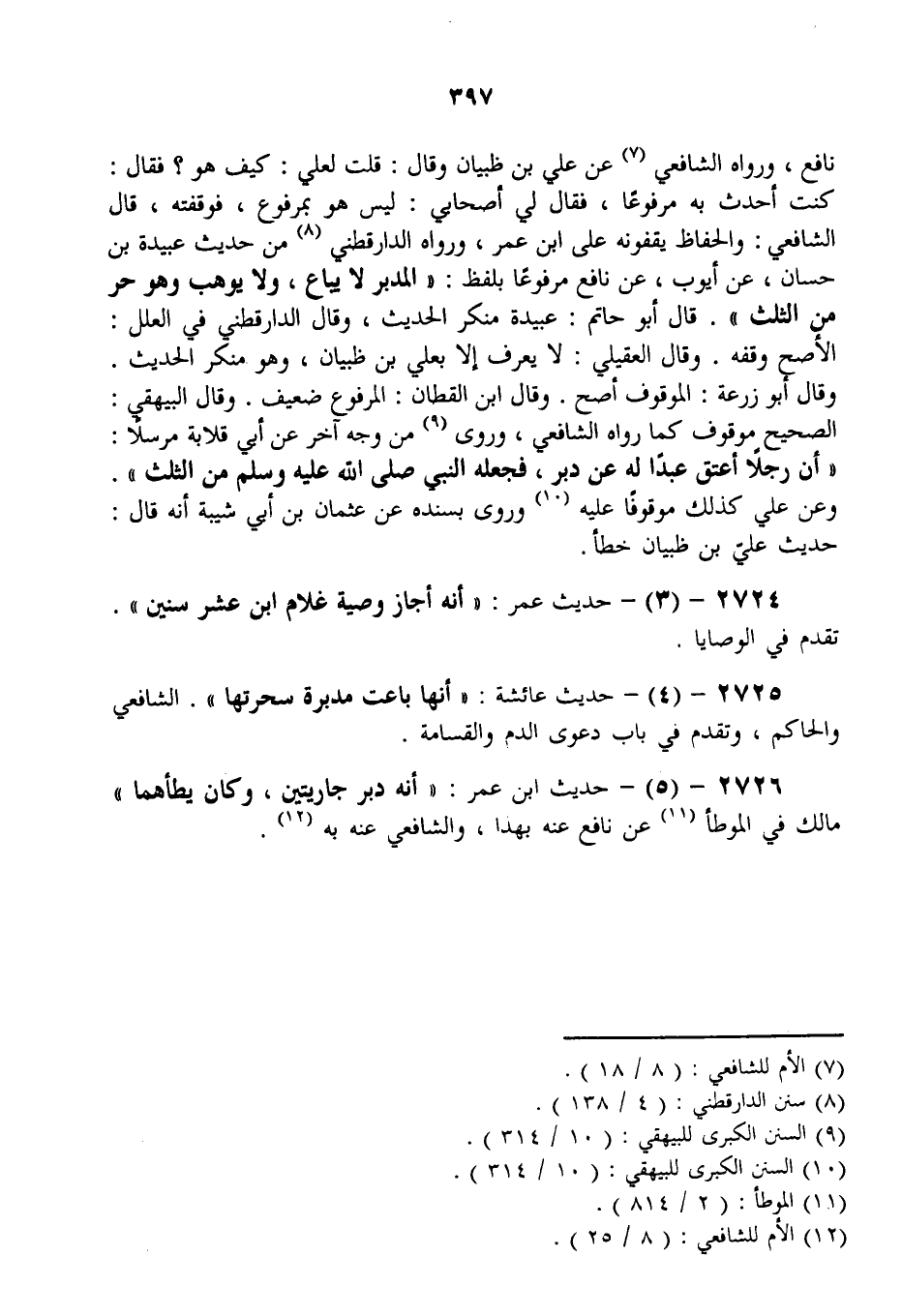2726 - (5) - حَدِيثُ ابْنِ عُمَرَ: " أَنَّهُ دَبَّرَ جَارِيَتَيْنِ، وَكَانَ يَطَأُهُمَا " مَالِكٌ فِي الْمُوَطَّأِ عَنْ نَافِعٍ عَنْهُ بِهَذَا، وَالشَّافِعِيُّ عَنْهُ بِهِ