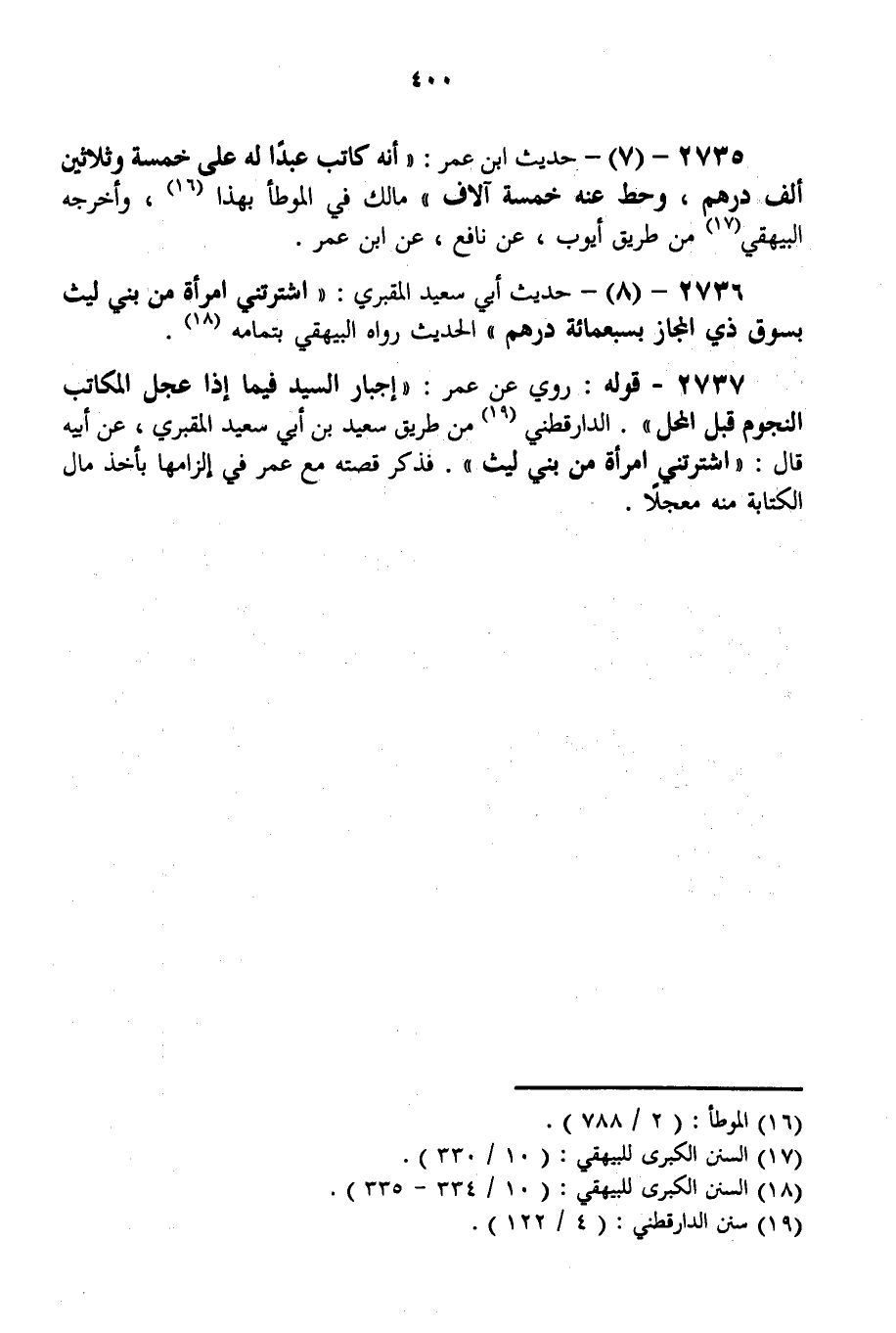 2735 - (7) - حَدِيثُ ابْنِ عُمَرَ: " أَنَّهُ كَاتَبَ عَبْدًا لَهُ عَلَى خَمْسَةٍ وَثَلَاثِينَ أَلْفَ دِرْهَمٍ، وَحَطَّ عَنْهُ خَمْسَةَ آلَافِ " مَالِكٌ فِي الْمُوَطَّأِ بِهَذَا، وَأَخْرَجَهُ الْبَيْهَقِيُّ مِنْ طَرِيقِ أَيُّوبَ، عَنْ نَافِعٍ، عَنْ ابْنِ عُمَرَ.