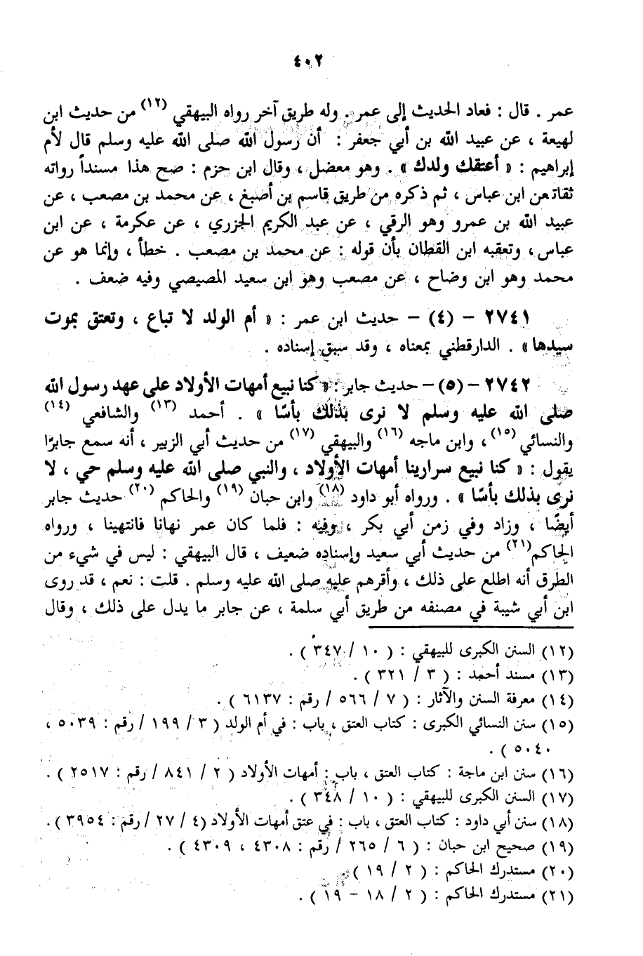 2741 - (4) - حَدِيثُ ابْنِ عُمَرَ: " أُمُّ الْوَلَدِ لَا تُبَاعُ، وَتَعْتِقُ بِمَوْتِ سَيِّدِهَا " الدَّارَقُطْنِيُّ بِمَعْنَاهُ، وَقَدْ سَبَقَ إسْنَادُهُ