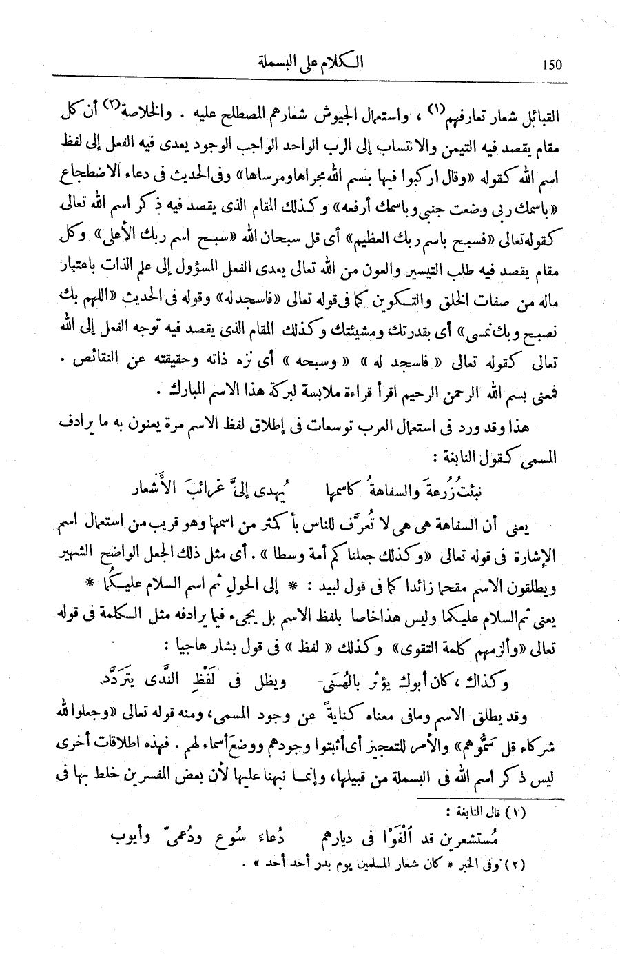 فَهَذِهِ إِطْلَاقَاتٌ أُخْرَى لَيْسَ ذِكْرُ اسْمِ اللَّهِ فِي الْبَسْمَلَةِ مِنْ قَبِيلِهَا، وَإِنَّمَا نَبَّهْنَا عَلَيْهَا لِأَنَّ بَعْضَ الْمُفَسِّرِينَ خَلَطَ بِهَا فِيُُ